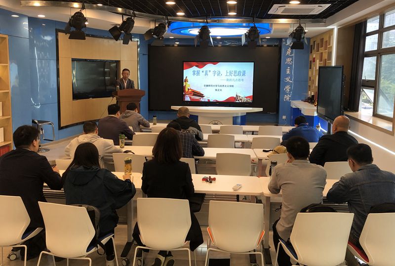 培训会伊始,张正光教授以自身的工作经历和感悟为切入点,强调了教学和科研这“两条腿”走路的重要性,并指出只有掌握“真”字诀,才能上好思政课。接着张正光教授从中央对上好思想政治理论课的具体要求、思政课想说爱你也容易以及上好思政课的“真”字诀三个层面依次展开讲授。张正光教授首先介绍了中央对上好思政课的具体要求,指出思政课教学的 核心在于引领员工做到“四个正确认识”,即正确认识思政课、正确认识思政课老师、正确认识思政课的作用以及影响;其次,他指分享了对思政课教学认识的三重境界,即认识思政课在高校整个教学体系中的地位、理解思政教学不是职业而是事业,领悟思政课教学是为党育才;最后,他阐述了思政课教师上好思政课的“真”字诀,即思政课教师要真懂马克思主义基本原理、要真信仰马克思主义、为员工真解惑真用心,要在真正研究思政课的同时真懂得互联网、练就真本领。