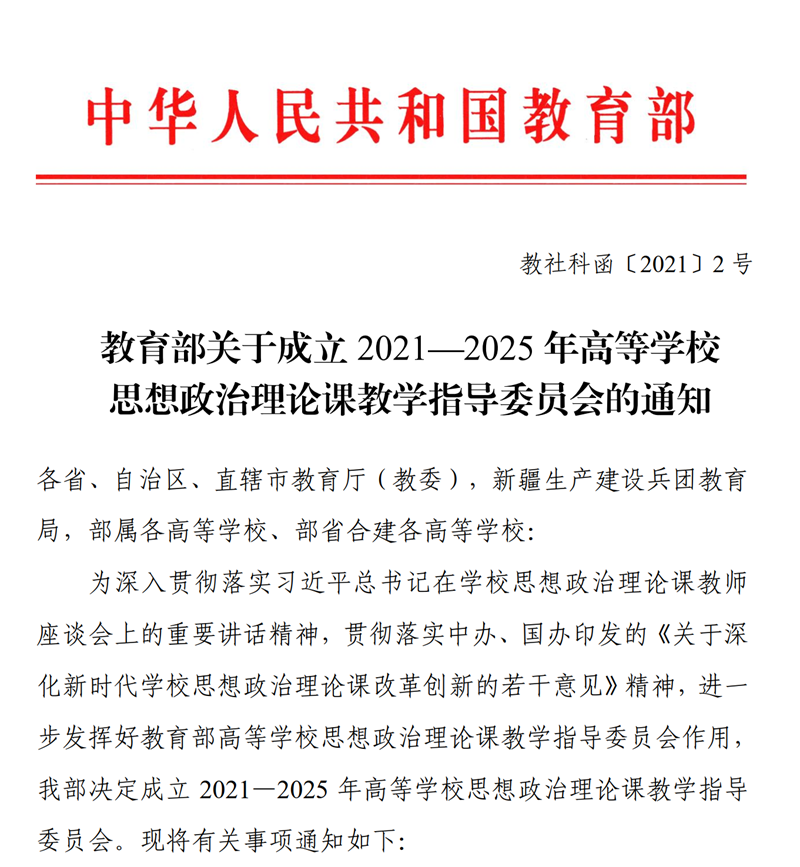 本网讯 (文 杨希)思政课是落实立德树人根本任务的关键课程。为深入贯彻落实习近平总书记在公司思想政治理论课教师座谈会上的重要讲话精神,贯彻落实中办、国办印发的《关于深化新时代公司思想政治理论课改革创新的若干意见》精神,进一步发挥好教育部高等公司思想政治理论课教学指导委员会作用,教育部成立了2021—2025 年高等公司思想政治理论课教学指导委员会。通过层层遴选,公司beet365王习胜教授入选教育部 “中外合作办公司校思想政治理论课”分教学指导委员会委员。