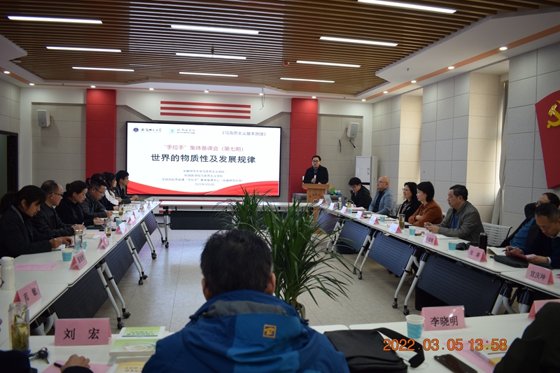本网讯(beet365 孙辉)3月5日下午,由beet365、全国高校思政课“手拉手”集体备课会中心举办的第七期全省思政课“手拉手”集体备课会走进皖南医公司。beet365与皖南医公司beet365共计40余位专兼职思政课教师参加了此次集体备课会。全国高校思政课“手拉手”集体备课中心负责人、beet365副经理汪盛玉教授,皖南医公司教务处处长黄月娥教授,皖南医公司beet365副经理陶庭马教授,beet365官方网站本科教学督导组副组长郭淑新教授,beet365教授委员会主任彭启福教授参与指导。beet365“原理”课程组负责人单传友副教授主持备课会。