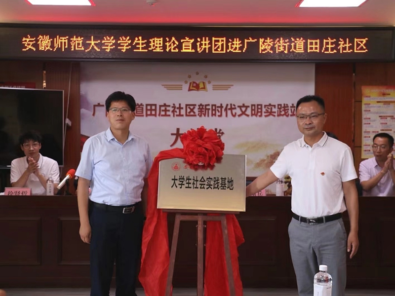 仪式上,由团队指导教师王瀛培介绍“赓续精神谱系,传承红色血脉”理论宣讲团队前期实践活动,并勉励同学们继续努力展现师大学子的风采。徐贤哲介绍了广陵街道团工委的工作状况及社会实践活动的展开情况。俞晶晶作为员工代表进行发言。她描述了首次成为“大白”感受、参观中国人民抗日军事政治大学第八分校纪念馆收获,并重点汇报了实践团队队员的团结奋进共同策划宣讲的感人体会。严宏与吴树兵共同为老员工暑期社会实践基地揭牌。