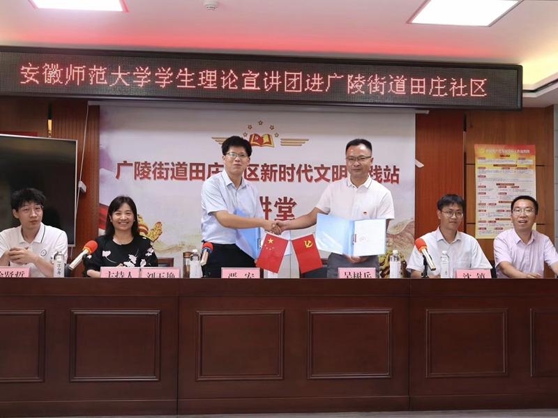 严宏总结讲话。他首先对广陵街道为师大学子提供的优质实践平台表达由衷地感谢;勉励同学们发扬师大学子吃苦耐劳的优良作风将好事做实;希望实践队员能珍惜实践机会及时总结巩固社会实践成果,把实践成果转化为助力学习的经验。签约揭牌仪式后,严宏和刘玉艳与全体团队成员座谈交流。