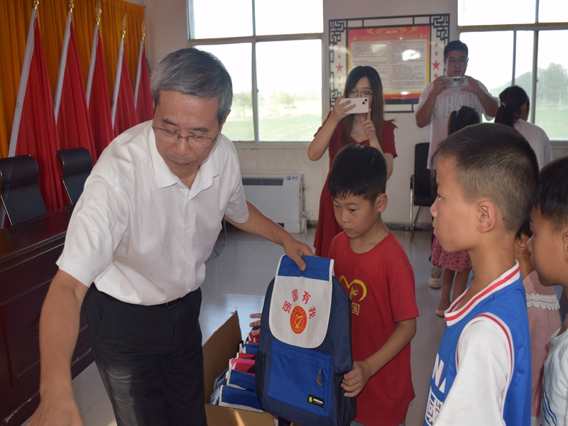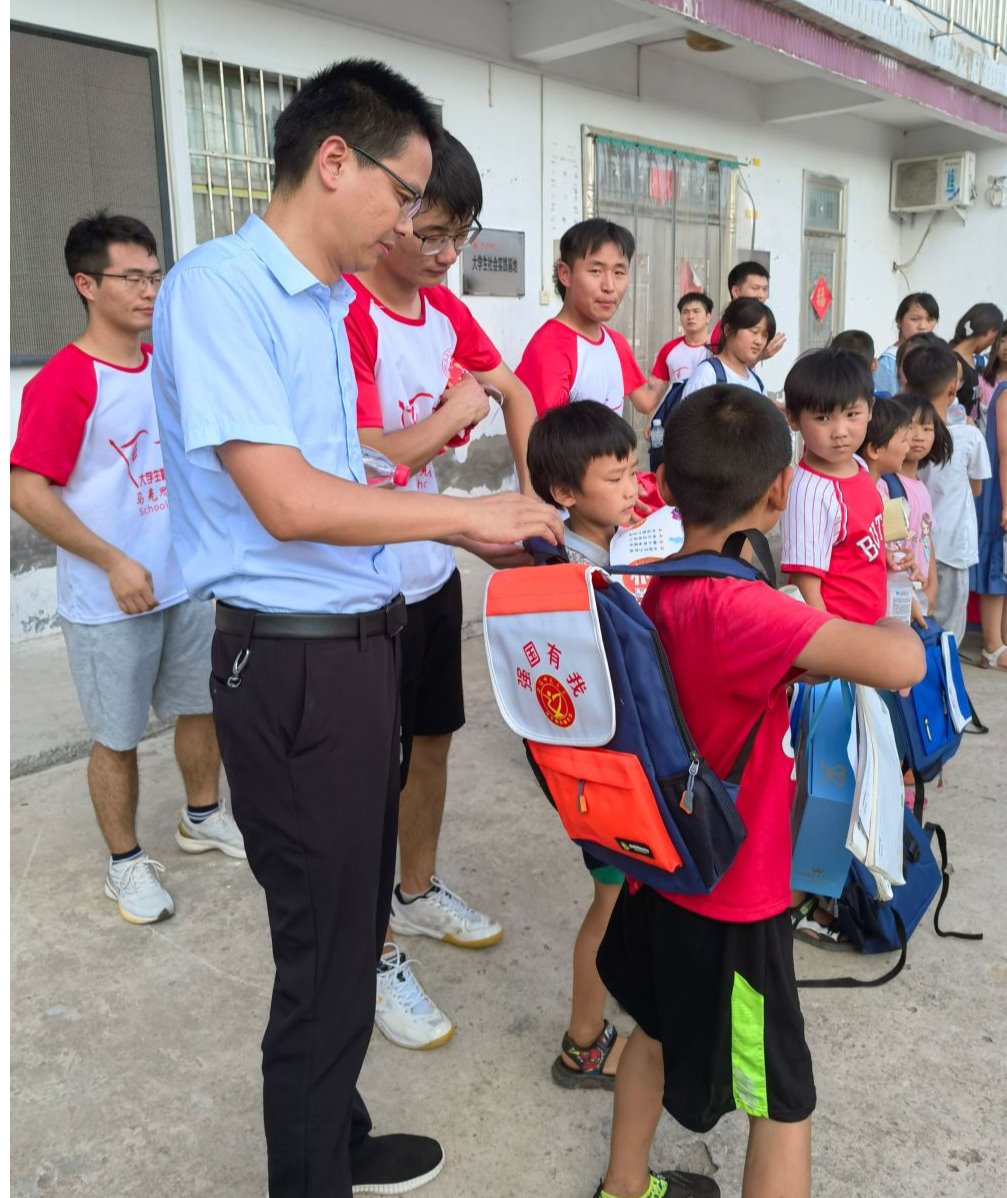 爱心捐赠,温情呵护育未来。联欢会后,实践团队在路丙辉的带领下为程大村的留守儿童捐赠了书包和文具共计80套学习用品。兴奋的孩子们纷纷排队到舞台前领取自己的礼物。路丙辉亲切地和每一位前来的小朋友打招呼,并询问他们喜欢哪种颜色的书包。孩子们对收到的书包和文具爱不释手,当场就要背上书包,汪凯和路丙辉还细心地帮助他们系好书包的背带。这次捐赠活动表达了实践团队对程大村父老乡亲的感激之情以及对留守儿童的爱和关怀。