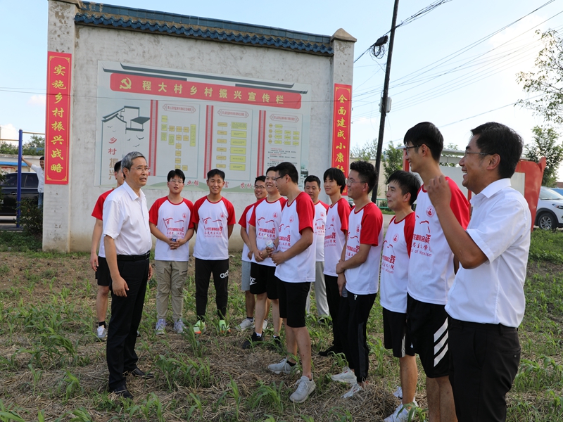为深入了解公司暑期社会实践情况,7月8日下午,校团委书记汪凯、公司党委副书记刘玉艳、团队指导教师、beet365教授路丙辉来到亳州市涡阳县程大村看望慰问暑期社会实践团队。涡阳县副县长冯飞、涡阳县委组织部农组中心主任曹振强、县团委书记孙兴琪、公吉寺镇党委书记何峰等热情接待了汪凯一行。