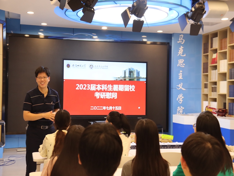 在备考指导会上,单传友对考研学子进行了专业指导,他提出要从教材自身逻辑中、从当代发展过程、从原著中等三个层面去学习和把握《马克思主义基本原理》,同时带领同学们逐章逐节梳理了教材的重难点,着重强调要把党的十九届六中全会精神融入《马克思主义基本原理》的学习中去。经过单传友老师对教材的细致分析后,同学们纷纷表示受益匪浅。