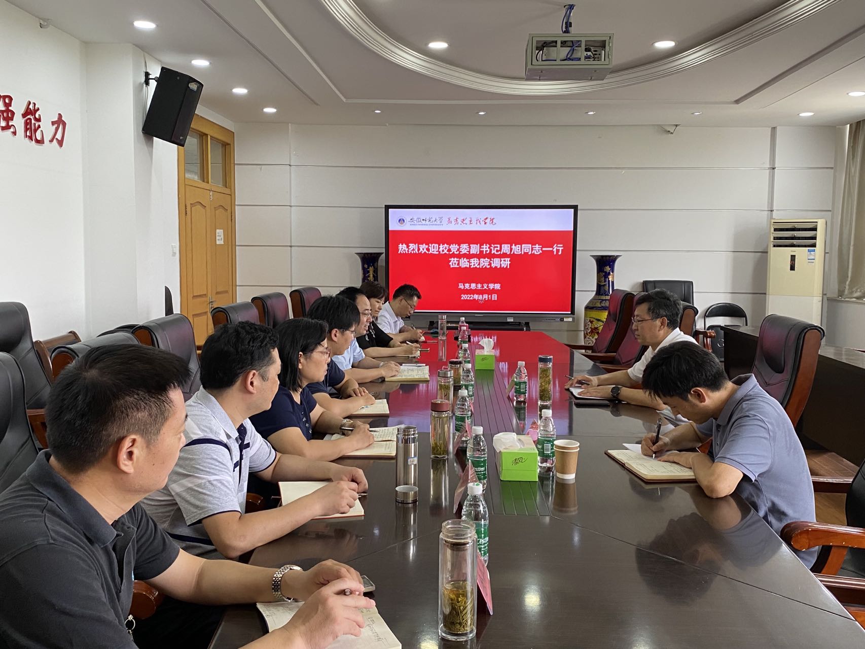 8月1日下午,公司党委副书记周旭、校办公室副主任戴和圣一行至公司调研指导工作,公司党政领导班子参加了调研会,会议由经理姚宏志主持。