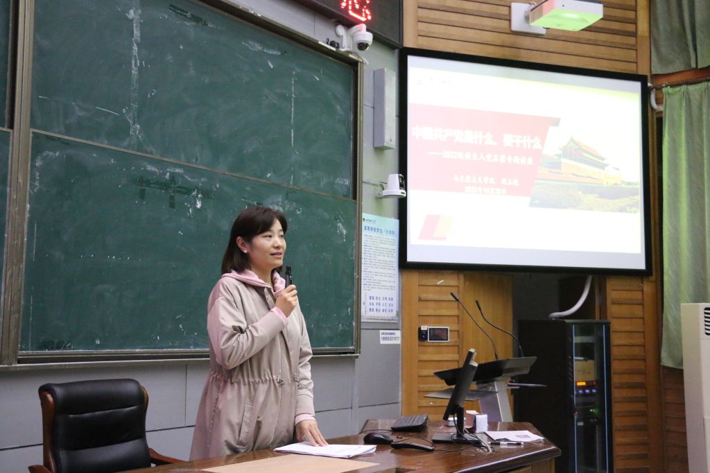 报告会上,刘玉艳讲述了中国共产党自始至终都是坚持全心全意为人民服务、有坚定理想信念的政党;阐释了中国共产党百年来取得的历史性成绩;说明了新生申请加入中国共产党的注意事项。她希望全体新生聚焦学习贯彻党的二十大精神,努力成为有理想、敢担当、能吃苦、肯奋斗的新时代好青年,同时祝愿同学们通过个人努力早日成为一名光荣的中国共产党党员。