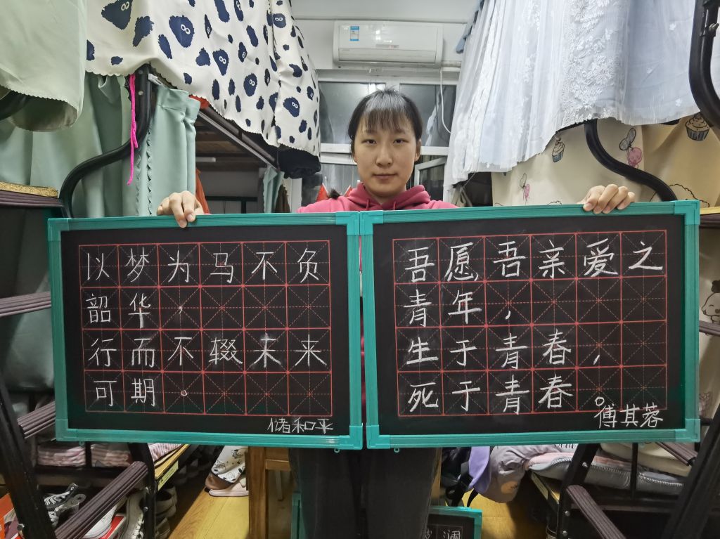 2022级思想政治教育专业和马克思主义理论专业的同学拿到渴望已久的小黑板后,纷纷表示小黑板进寝室解决了大家日常练习粉笔字的困扰。2022级优师计划朱晴同学更是感慨:“宿舍小黑板非常贴心,刚入校就感受到了公司对师范生培养的重视,未来有幸成为一名人民教师,一定努力成为一名‘四有’好老师,不辜负公司的培养与期望”。