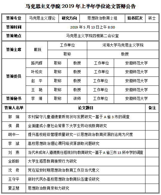 beet3652019年上半年学位论文答辩公告