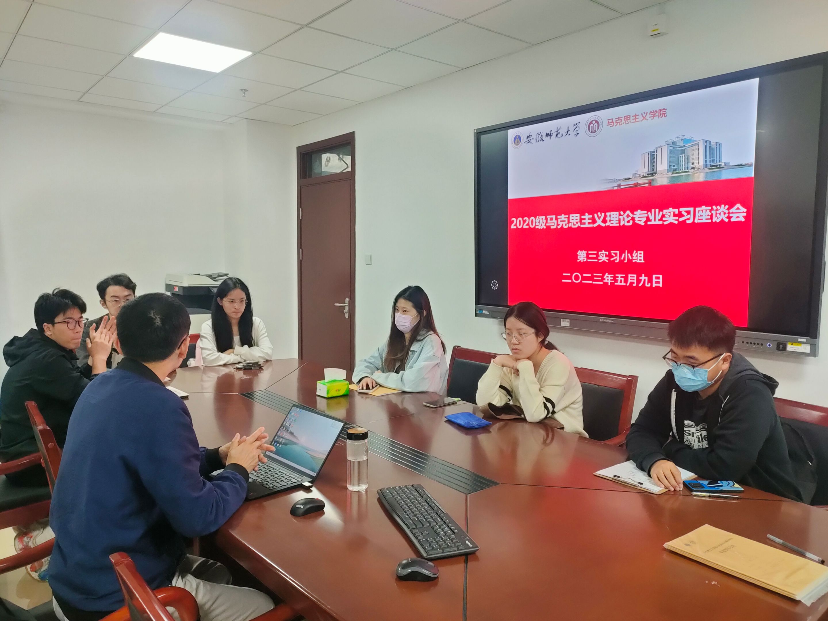 本网讯(文/沈满 摄/时可)5月9日晚,2020级马克思主义理论专业镜湖区委和范罗山街道小组在文典楼G326办公室召开第二次组内实习交流会,指导老师陈勇和全体组员参加。