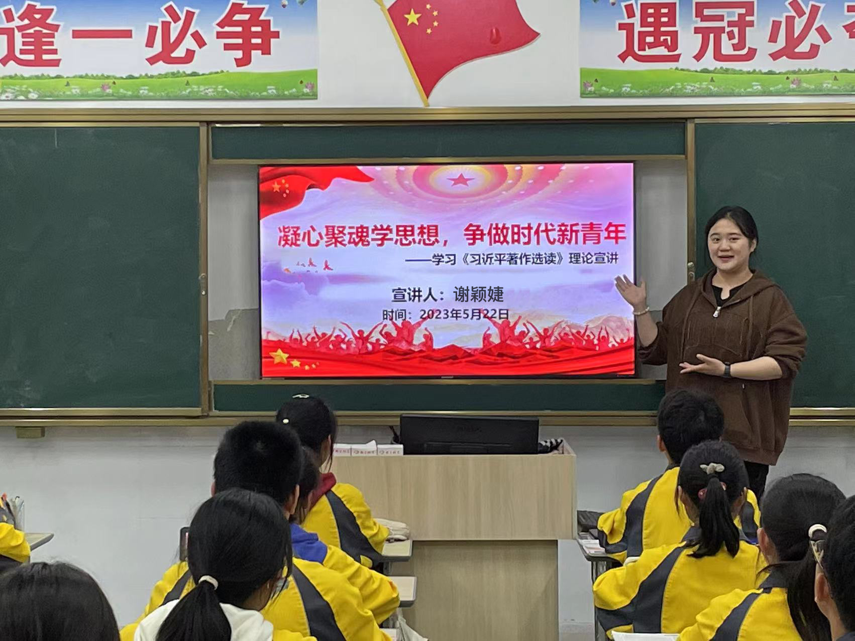 本网迅(文/摄 薛韩冰)5月20日,泾县实习小组组建了“薪火相传”老员工党员宣讲队,开展了多轮学习研讨,从选题到内容、从文字到形式,精心准备、精细打磨,为进班宣讲做好了充分的准备。5月22日晚,在泾县中学高一(4)班开展了以学习《习近平著作选读》为主题的理论宣讲活动。