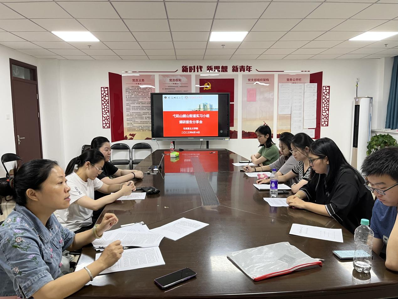本网讯(文/李欣贝 摄/付跃东)6月14日晚,为更好地总结专业实习的经验,进一步加强理论与实践相结合的能力,镜湖区赭山街道、弋矶山街道实习小组在文科大楼G215会议室举行实习总结交流会,指导教师温建萍和全体实习生参加。