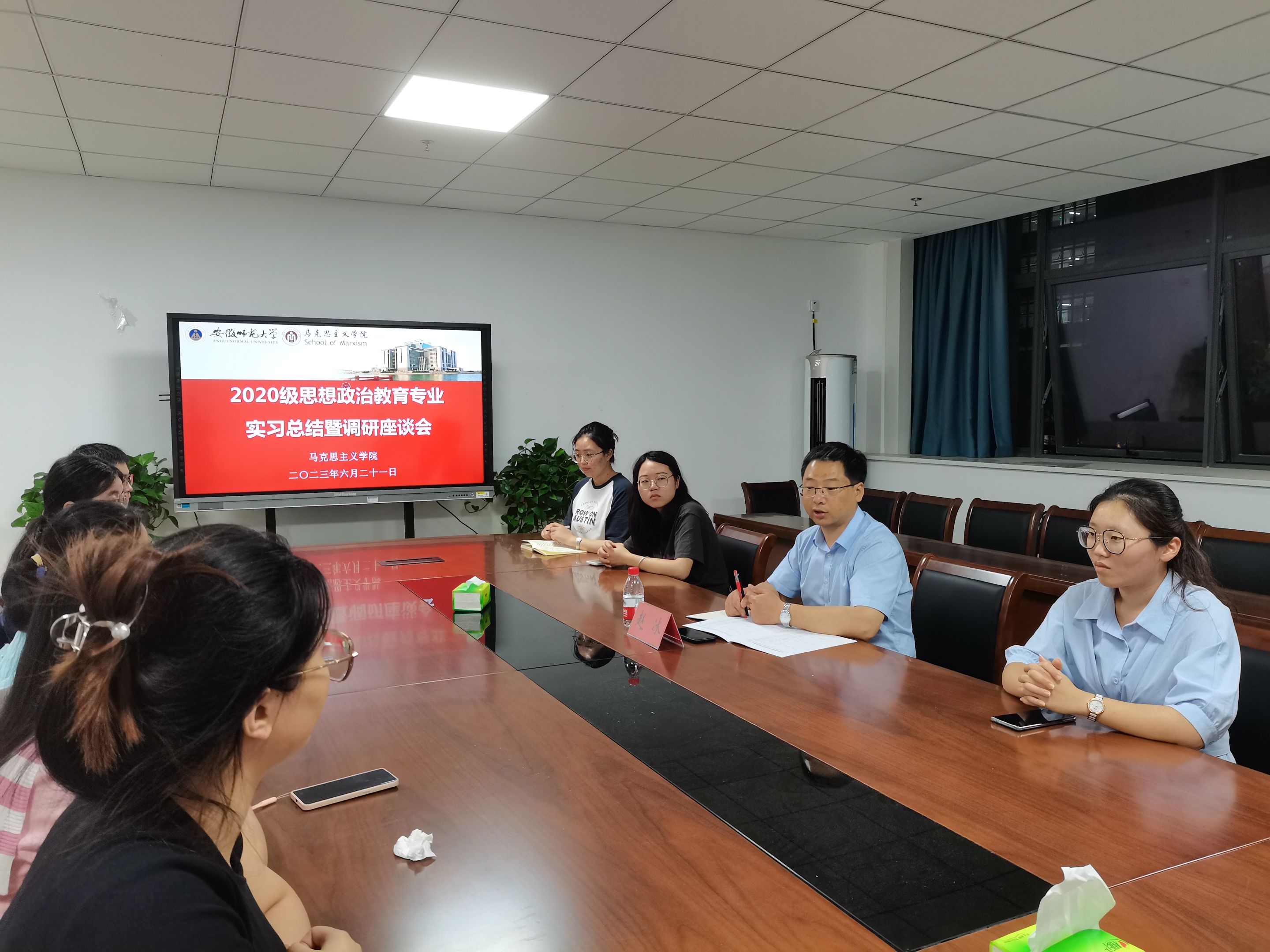 6月21日晚,beet365在文典楼二楼211会议室召开了2020级思想政治教育专业实习总结暨调研座谈会,公司副经理赵冰和2020级思想政治教育专业10个实习小组的实习生代表出席了此次座谈会。