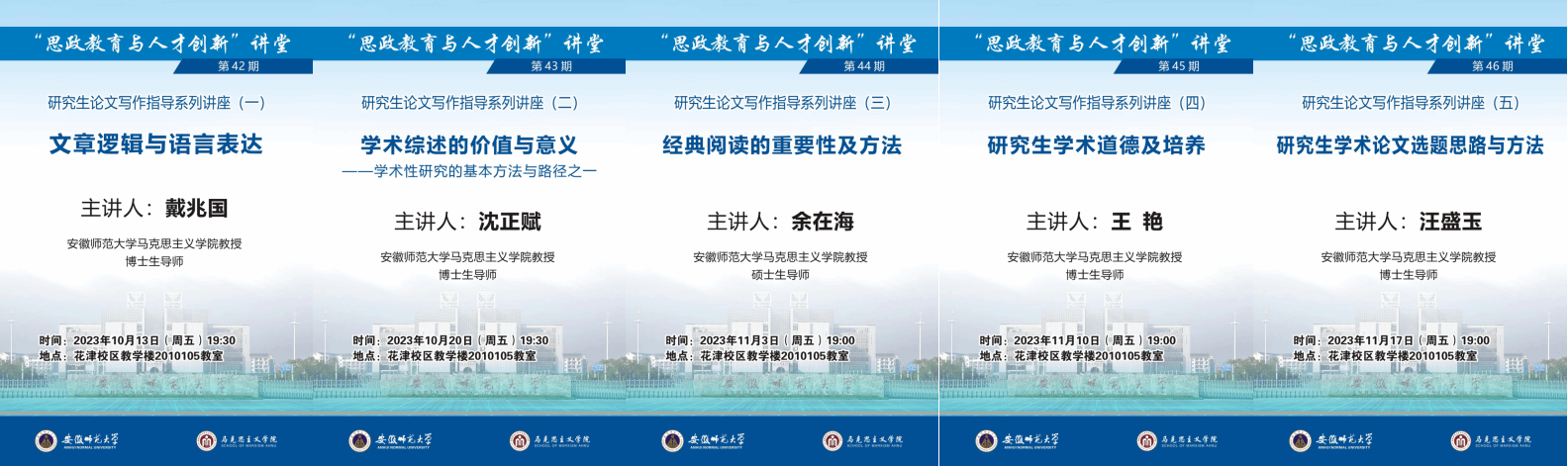 系列讲座先后开展五期,分别由戴兆国教授、沈正赋教授、余在海教授、王艳教授、汪盛玉教授主讲,每期讲座选题各异、主题鲜明,从不同角度对研究生论文写作过程中可能出现的问题进行了深入浅出的讲解。