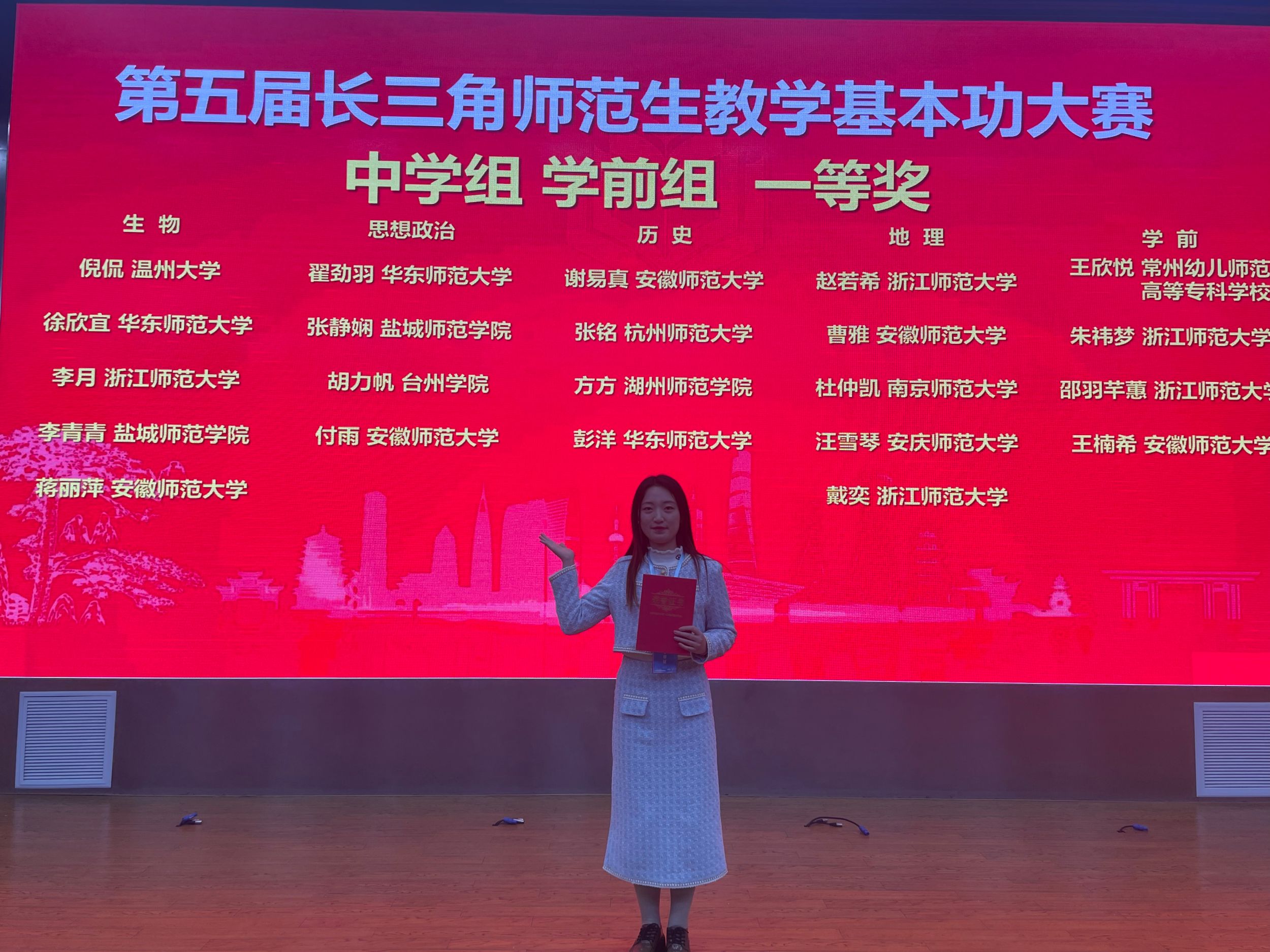 12月19日,第五届长三角师范生教学基本功大赛在beet365官方网站落下帷幕。经过激烈角逐,学院参赛的2名员工全部获奖,其中,付雨荣获一等奖,黄婉清荣获二等奖。