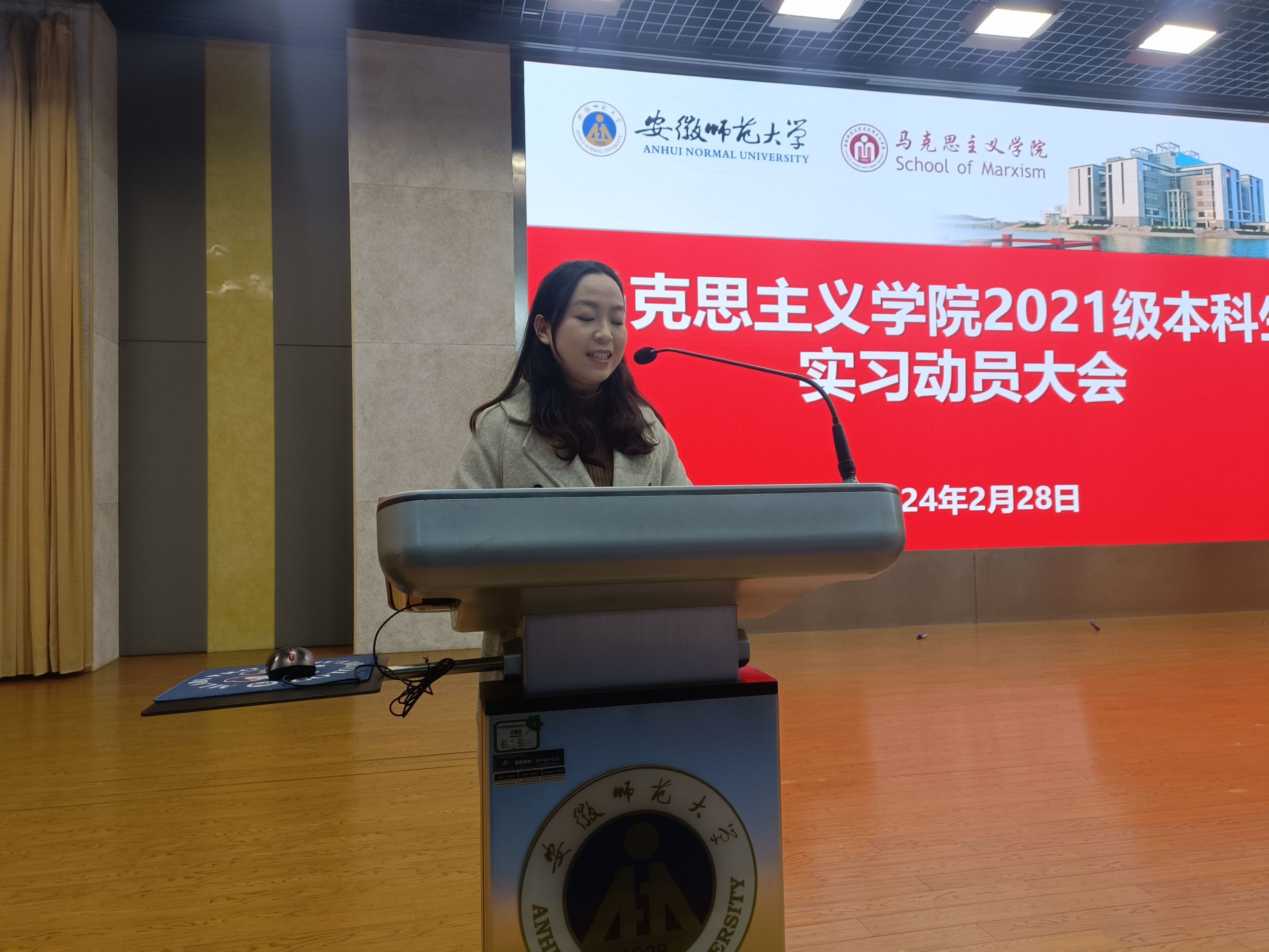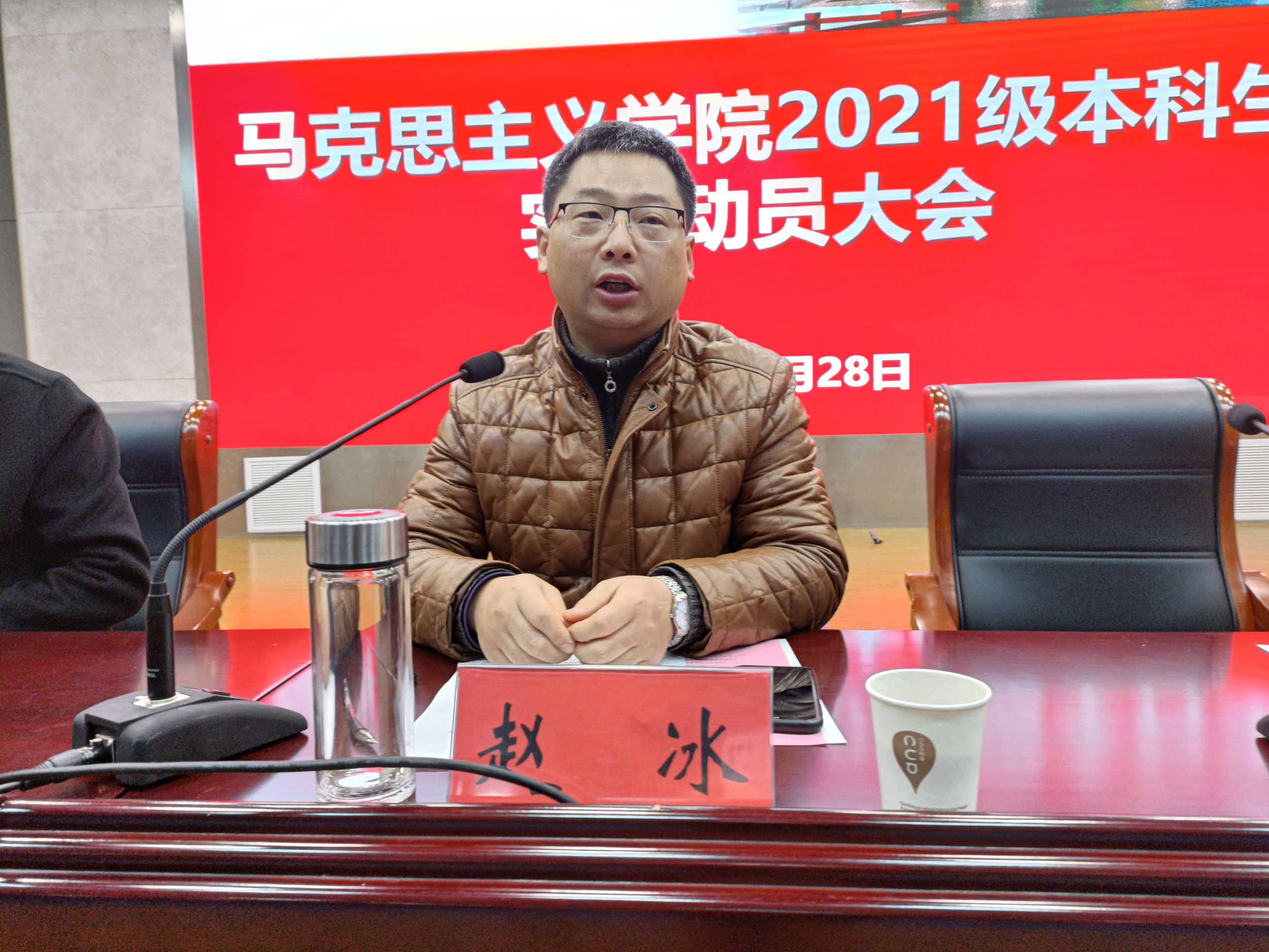 会上,赵冰副经理首先从为什么要开展实习、实习都是做什么、今年的实习有何不同等三个方面做了实习动员,随后赵冰副经理、王子廓老师分别就思想政治教育专业和马克思主义理论专业实习安排作了详细的解读说明。