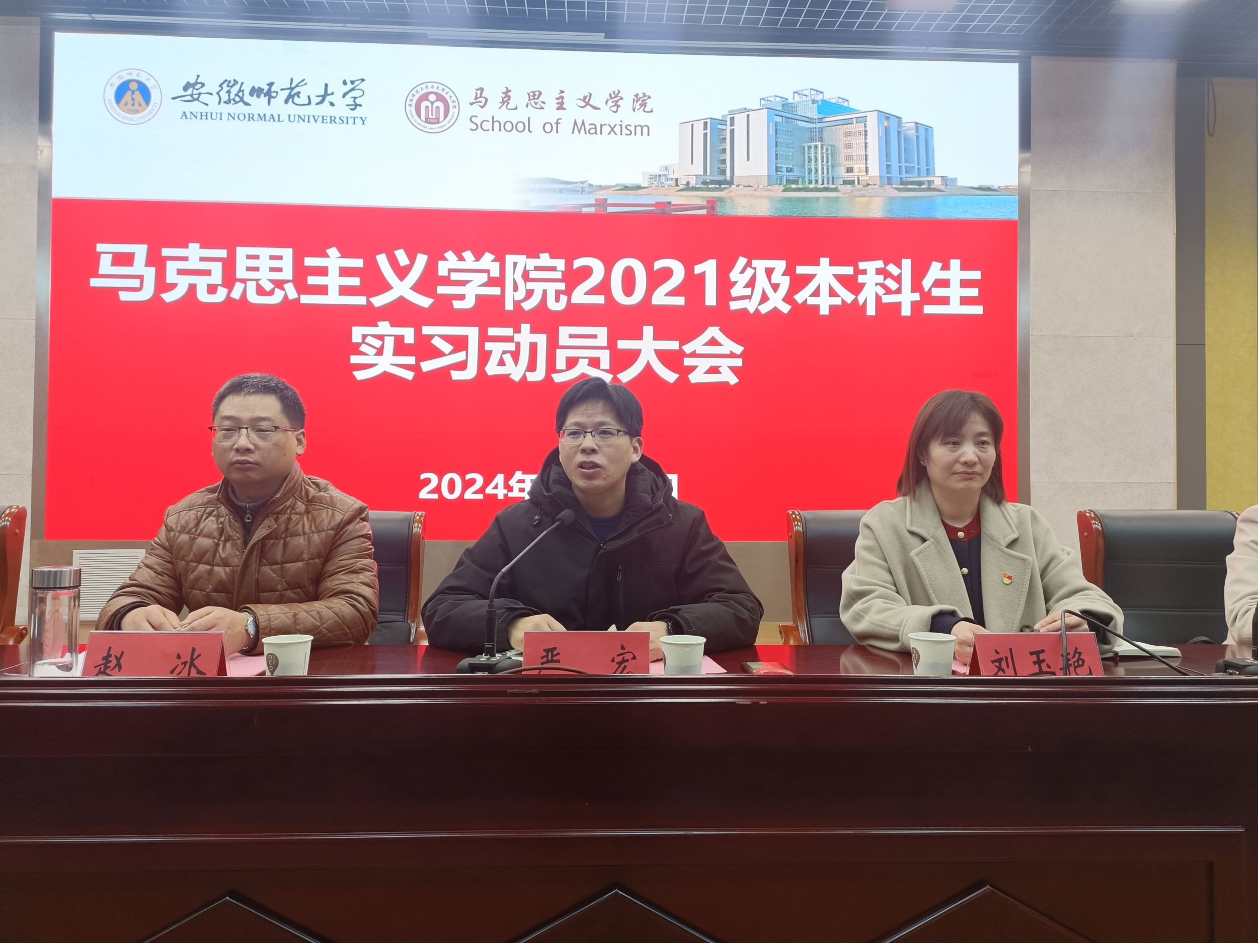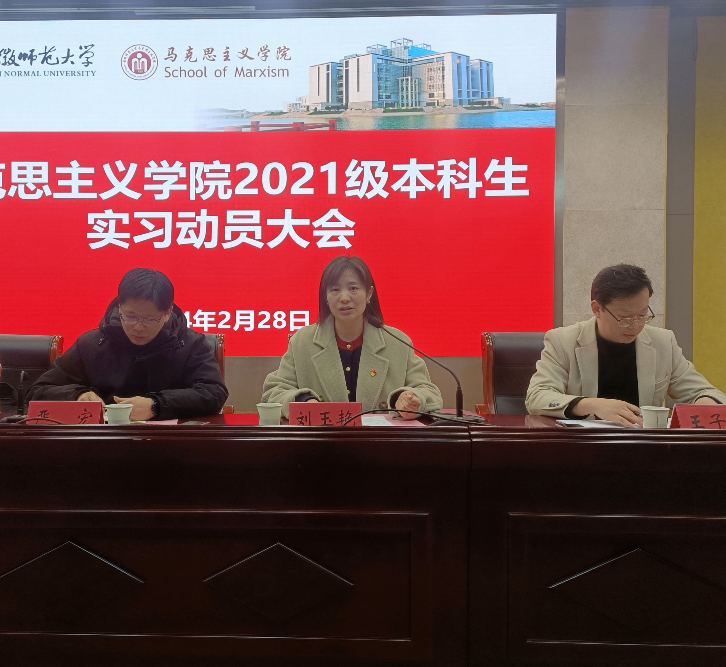 2月28日下午,公司在理科大楼举行2021级本科生实习动员大会。公司党委书记严宏、公司党委副书记刘玉艳、副经理赵冰、马克思主义理论专业负责人王子廓和各实习小组指导教师出席会议,动员大会由2021级本科生辅导员沈镇主持。