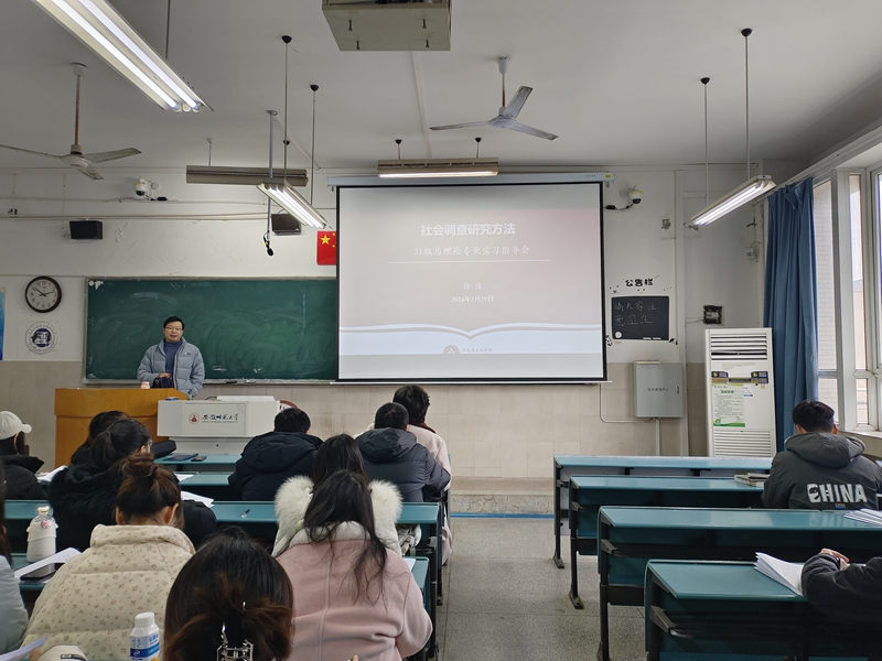 为给即将开展的实习工作打下坚实基础,保证专业实习顺利进行,2月29日上午,公司在行知楼2020501教室组织2021级马克思主义理论专业本科生召开实习指导会暨社会调查研究方法指导会。此次指导会由徐佳老师主讲,王子廓老师主持,2021级马克思主义理论专业全体成员参与。