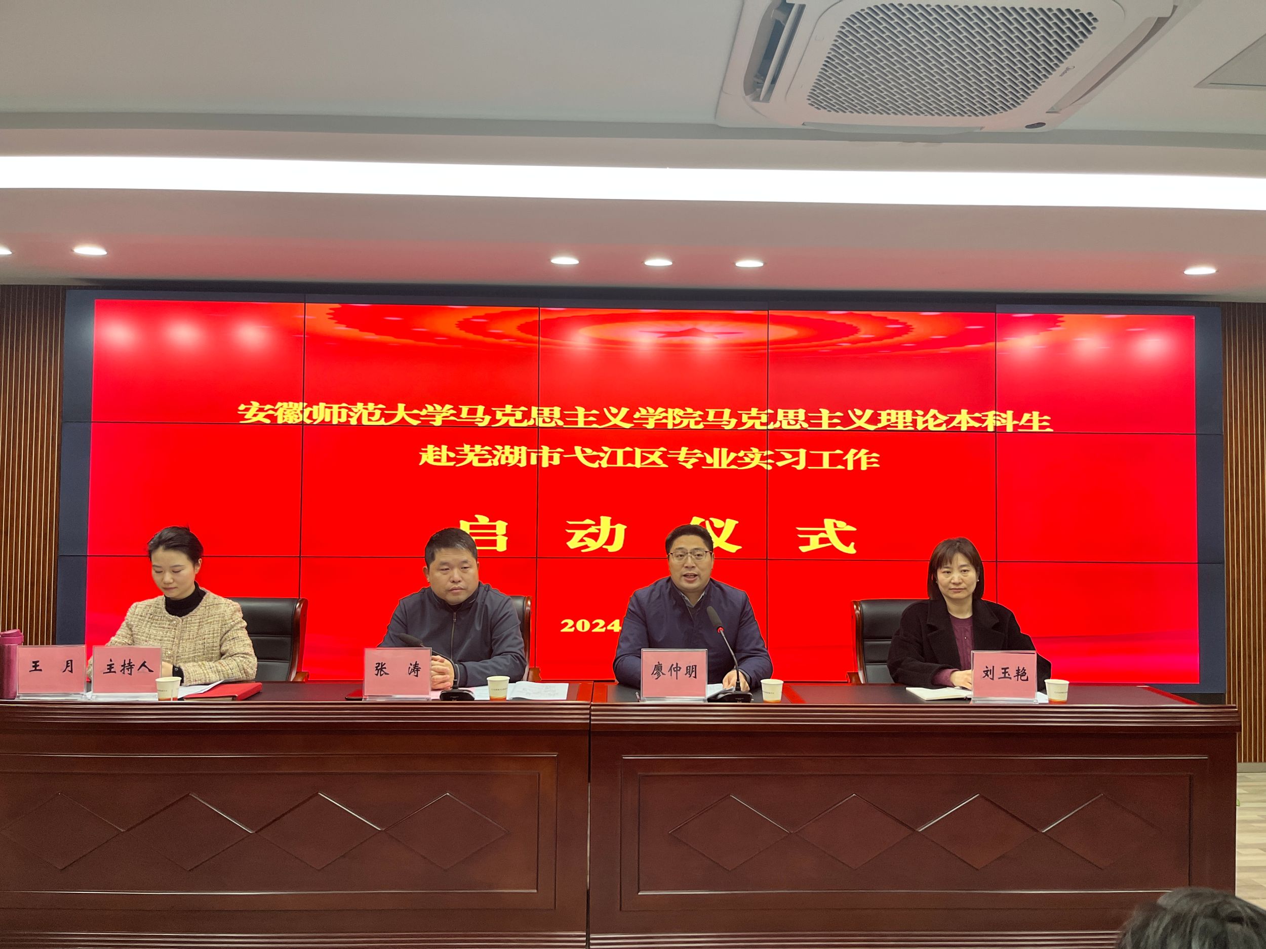3月6日上午,公司2021级马克思主义理论专业本科生赴芜湖市弋江区专业实习工作启动仪式在中共弋江区委党校三楼报告厅举行。弋江区委组织部副部长张涛,团弋江区委书记王月,校团委书记廖仲明,公司党委副书记刘玉艳出席会议,校团委组织部副部长王玥、专业负责人王子廓、实习小组指导教师高艳杰、孙辉,本科生辅导员沈镇、2021级马克思主义理论专业弋江区政务实习生参加会议。启动仪式由团弋江区委书记王月主持。