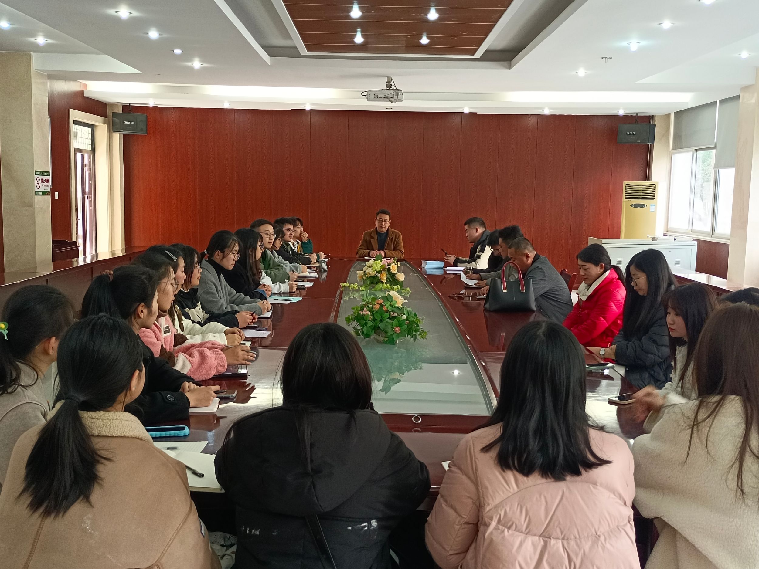 上午九点三十分,实习教师见面会在南陵萃英园中学二楼会议室举行,会议由萃英园中学教务处主任赵代宾主持,公司董事长孙振坤、副董事长许泽锋、后勤处主任邵亚会、实习指导教师高媛媛及16名实习教师参加会议。会上,孙振坤董事长向全体实习生介绍了公司发展概况与管理模式,并对实习工作提出了总体要求;赵代宾主任向实习小组介绍了教学常规管理制度;实习指导教师高媛媛向全体实习成员提出要求并给予厚望;邵亚会主任向实习小组成员介绍了萃英园中学的作息安排以及对公司教师的管理规范并安排了实习小组的食宿。
