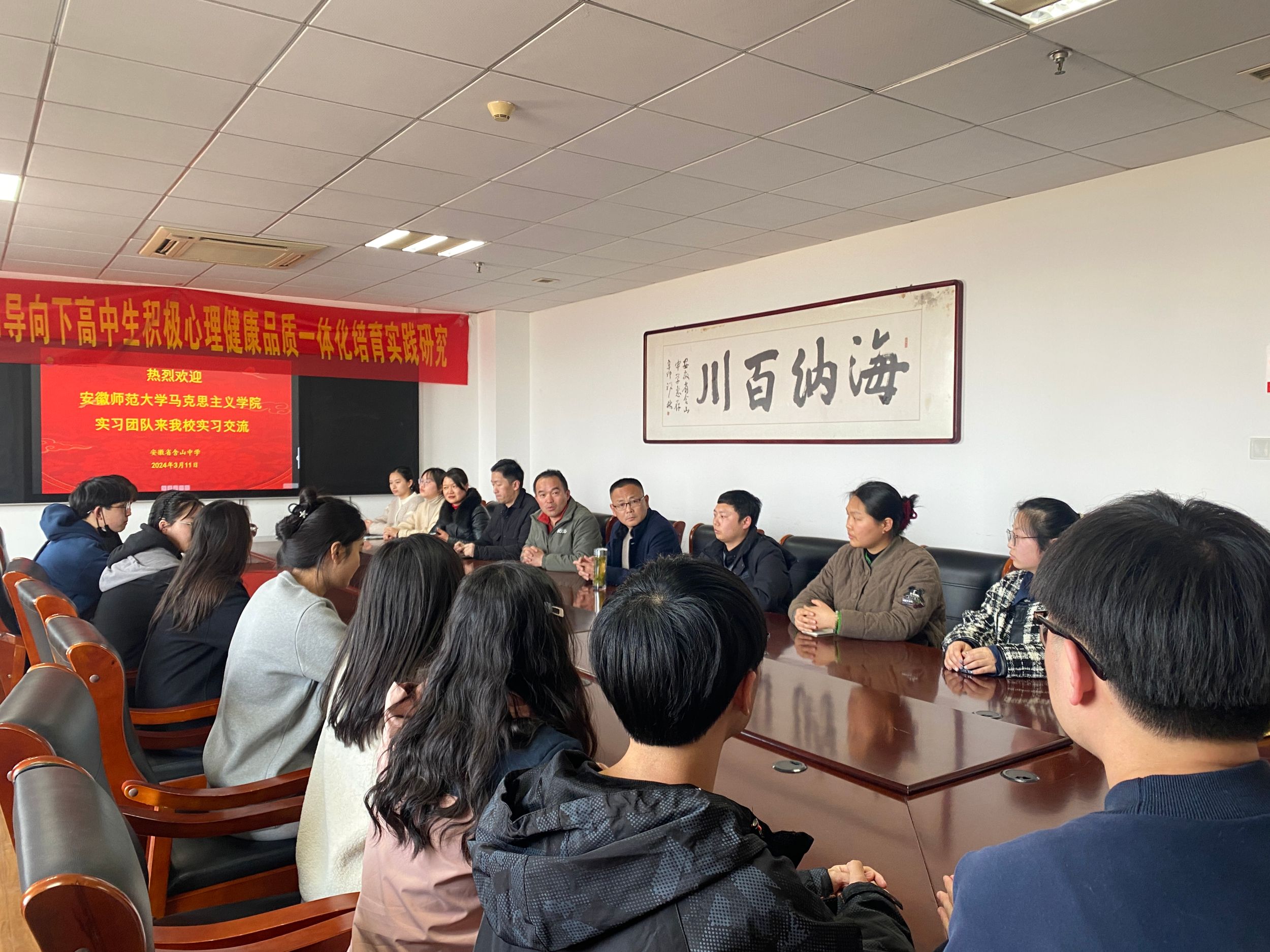 3月11日,2021级思想政治教育专业16名本科生赴含山中学开展为期近三个月的教育实习,含山中学于当天下午在公司会议室召开了实习生见面会,会议由含山中学刘晓明董事长主持,教务处、总务处、政治教研组等相关单位负责人参加会议。