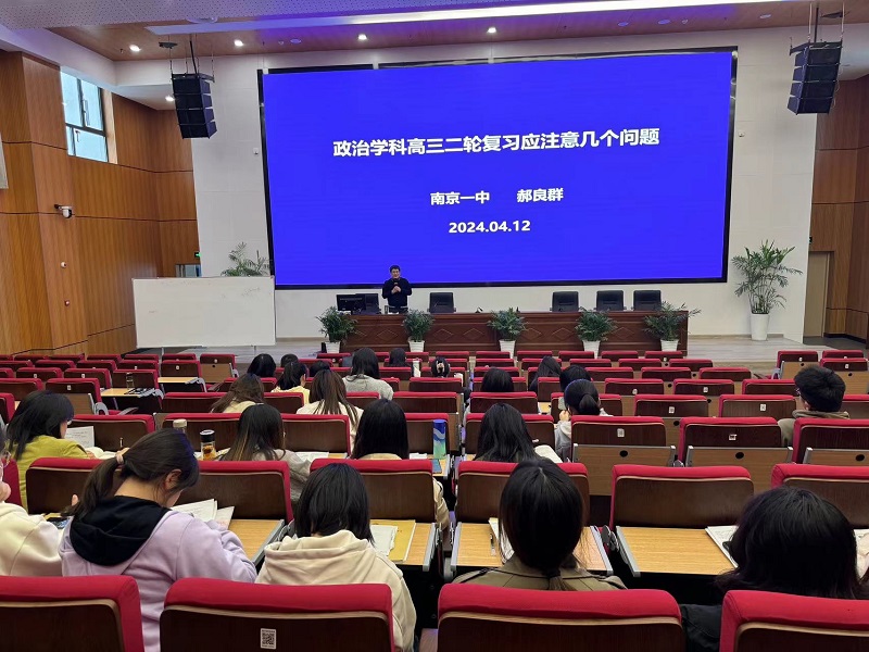 最后,实习生们认真听取了南京市高中政治中心组成员、南京市政治学科带头人、南京市德育工作带头人、南京市第一中学政治组教研组长郝良群老师针对政治学科高三第二轮复习应注意的几个问题展开的讲座。郝良群老师指出,第二轮复习课需要培养员工从知识密集型转向能力密集型,老师要做的则是心中有课标、脑中有真题、手中有教材、眼里有员工、耳中有信息。