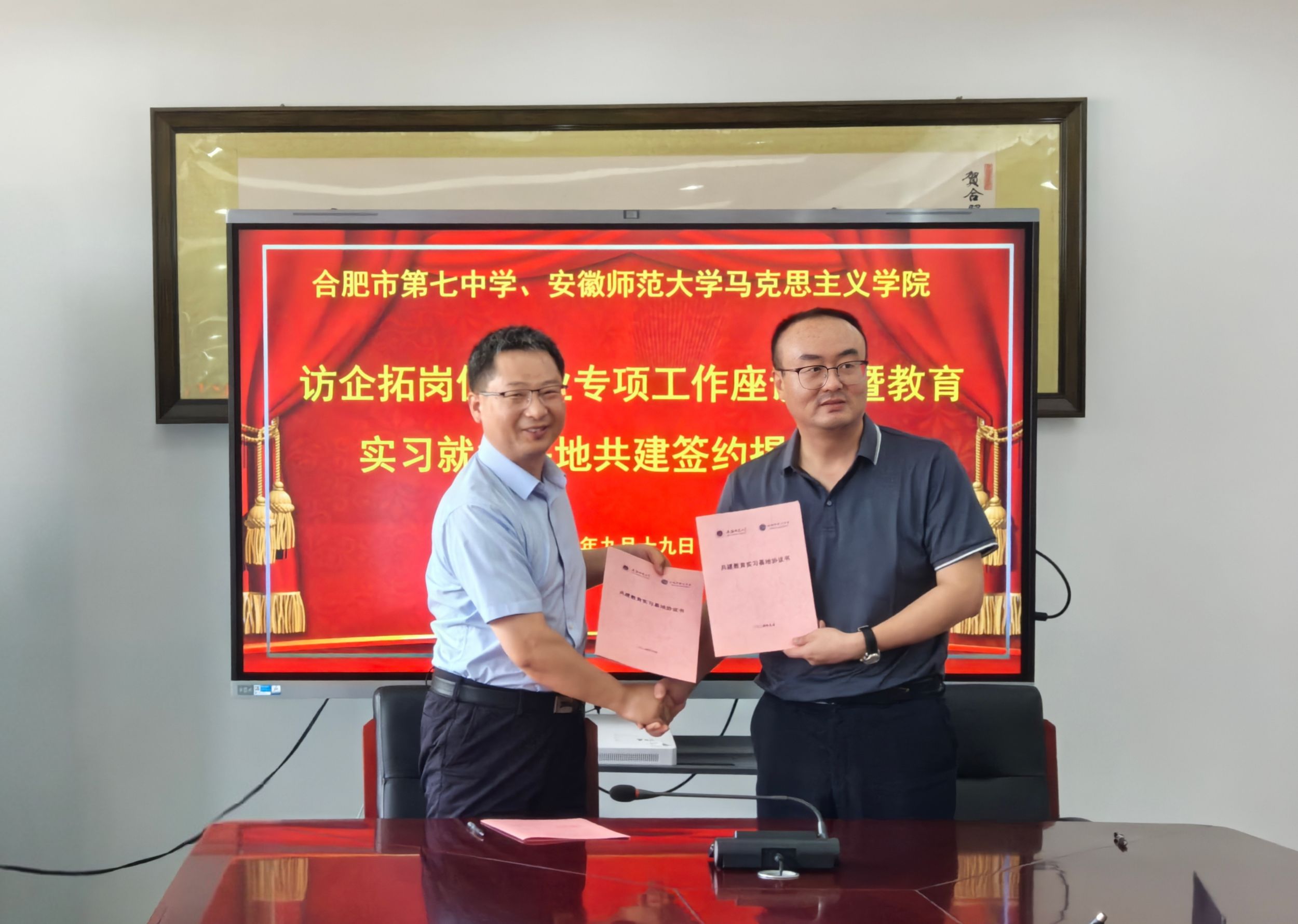 为提升专业人才培养质量,深化员工公司产品技能。9月19日上午,beet365赵冰副经理、陶永华教授和辅导员沈镇老师一行前往合肥七中就建立教育实习实训基地一事签约授牌。