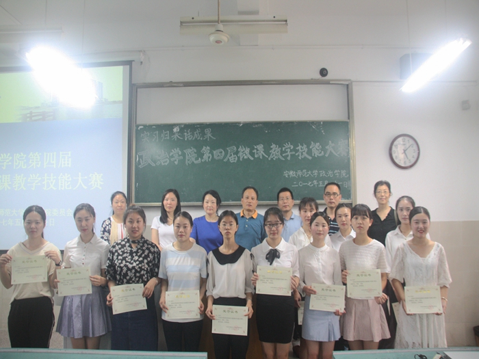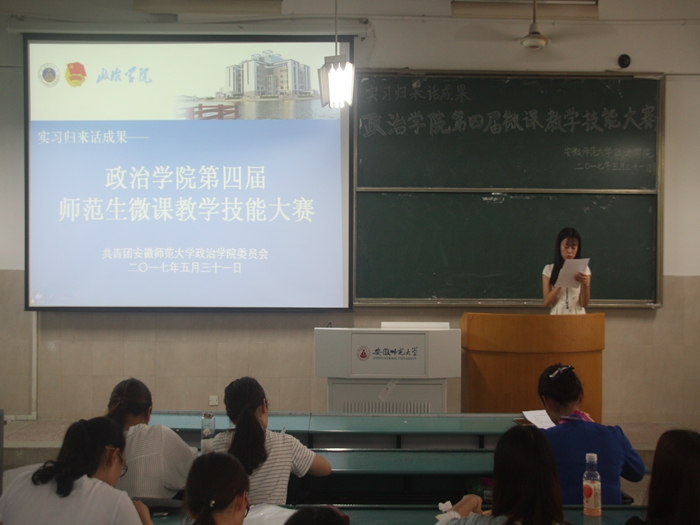 本次比赛限时10分钟。比赛开始后,选手们依次上台,结合制作精美的PPT,围绕自己的选题内容进行教学展示。他们结合实习期间积累的教学经验,通过热点导入、视频播放、现场互动等多种形式创新教学方法,活跃课堂气氛,增加课堂的吸引力,较好地展示了教育实习所取得的丰硕成果。最终,陈心茹和姜晓京同学荣获此次微课教学大赛一等奖,四名选手获得二等奖,6名选手获得三等奖。比赛结束后后,干成俊教授结合参赛选手的具体表现,围绕教学内容、教学方法及特色方面进行了点评,并希望同学们能够创新教学方法,形成自己的独特风格,进一步提升个人素质及能力。