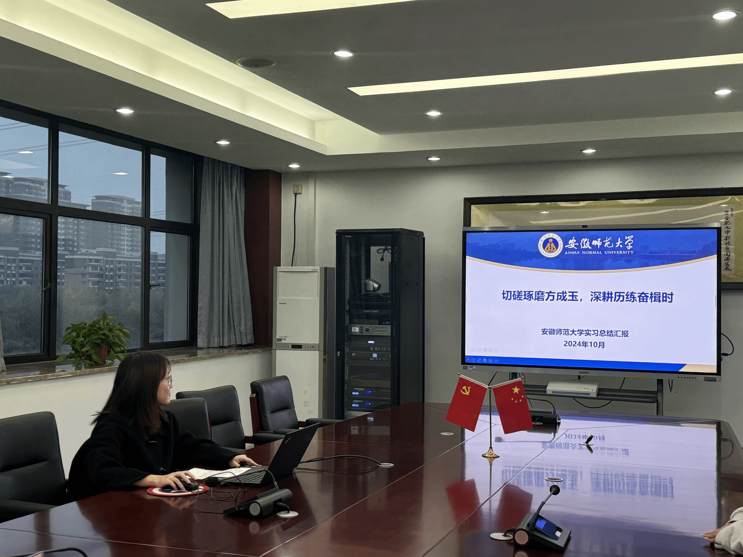 下午,公司副经理赵冰、辅导员夏盼盼老师在合肥七中开展了实习检查和慰问工作,并召开实习师生座谈会。合肥市第七中学副董事长刘先群、教务处主任赵生伟出席会议,全体实习生参加会议。实习组长吴淼从学科教学、班主任工作、公司活动、总结反思四个方面汇报了实习生过去两个月实习的整体情况,随后赵冰副经理对合肥市第七中学提供教育实习平台表达了感谢之情,并指出公司积极落实教育部印发的《关于做好“优师计划”师范生就业工作的通知》,对“优师计划”员工培养尤其是实习环节高度重视,并代表公司表达了对“优师计划”员工的亲切慰问。刘先群副董事长勉励实习生们在接下来的实习时间里继续以高标准严格要求自己,把握发展和提升的机遇,利用好合肥市第七中学提供的各种实习资源,来促进自身全方面发展,为以后走上教师岗位打下坚实的基础。