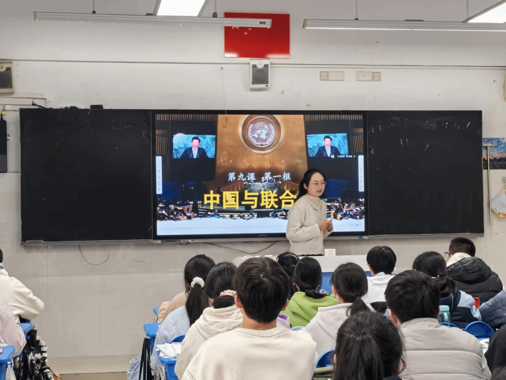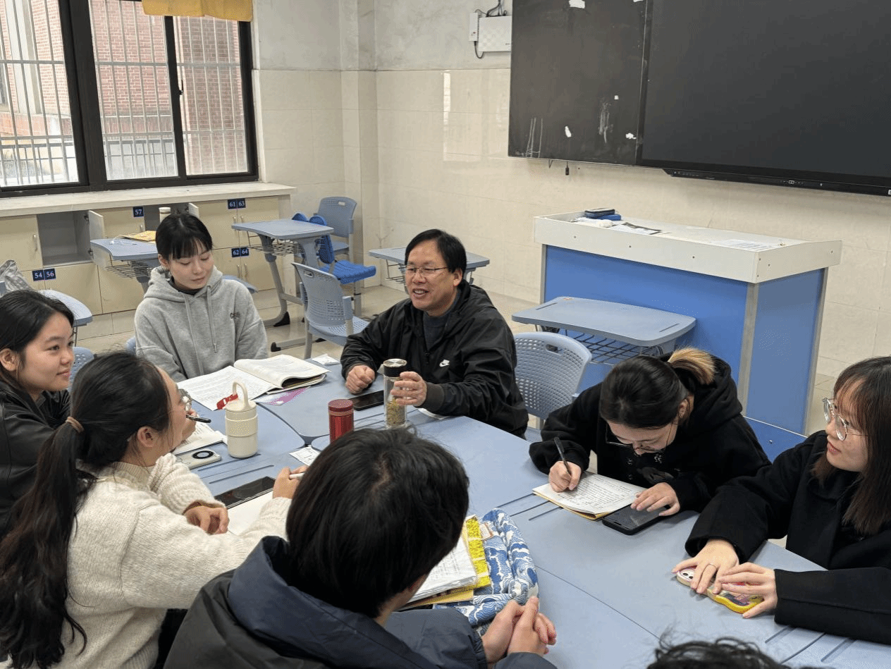 随后,陶永华老师在高一年级教室召开评课会,对授课实习生的表现进行指导和点评,他对实习生在授课过程中展现出教学能力方面的进步予以肯定,也对不同实习生具体的授课细节提出针对性的完善意见。他提出,在课堂上要与员工大胆的交流,包括口头语言的交流、肢体语言的交流以及眼神的交流,将课堂预设和生成相结合。他还强调到议题式教学与常态课并不矛盾,要加强二者的融合,在教学设计的艺术性方面要向公开课靠齐;实习生在接下来的实习中也要积极磨练自己的教学技能与教学水平,相互学习,积极反思,取长补短,勇敢地迎接挑战,在实践中不断成长。
