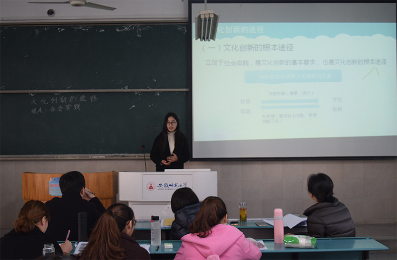 本次考核内容包括教学目标是否恰当明确、授课内容是否合理清晰、教学姿态是否从容、教学设计是否联系实际等方面,全体实习生分为12组同时进行。在每位实习生上完一堂35分钟的课程后,实习指导老师和特邀的政治老师在现场对每位同学的授课情况进行点评并打分。针对同学们在此次考核中暴露出来的种种问题,如板书格式不规范、PPT制作细节处理不恰当、讲课思维不清晰、课程内容安排不合理等,点评老师们都一一作了深入细致的指正。同时,老师们也对各位同学积极的教学准备、虚心的学习态度以及努力提高自身专业素质的决心予以充分肯定并提出了殷切的希望。