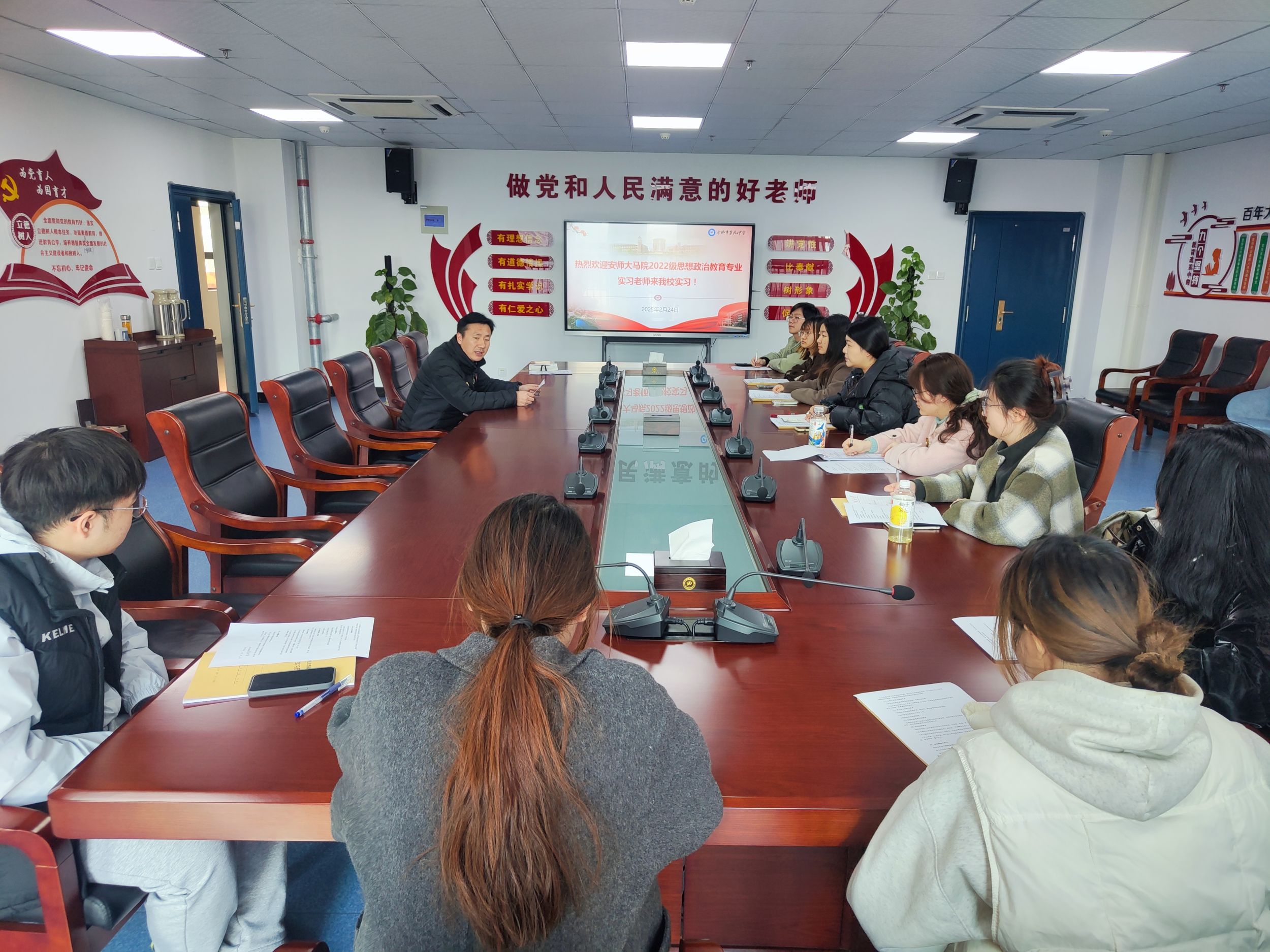 2月24日上午,在公司指导教师陶永华教授的带领下,2022级思想政治教育专业10名本科生赴合肥市第九中学进行为期三个月的教育实习。为了帮助同学们顺利接手实习工作,推进教育实习进程,合肥第九中学于下午2点在养正楼十楼综合会议室开展了实习生见面会。本次见面会由教务处副主任高淋老师主持,副董事长范玮出席并作指导讲话,全体实习生参加会议。