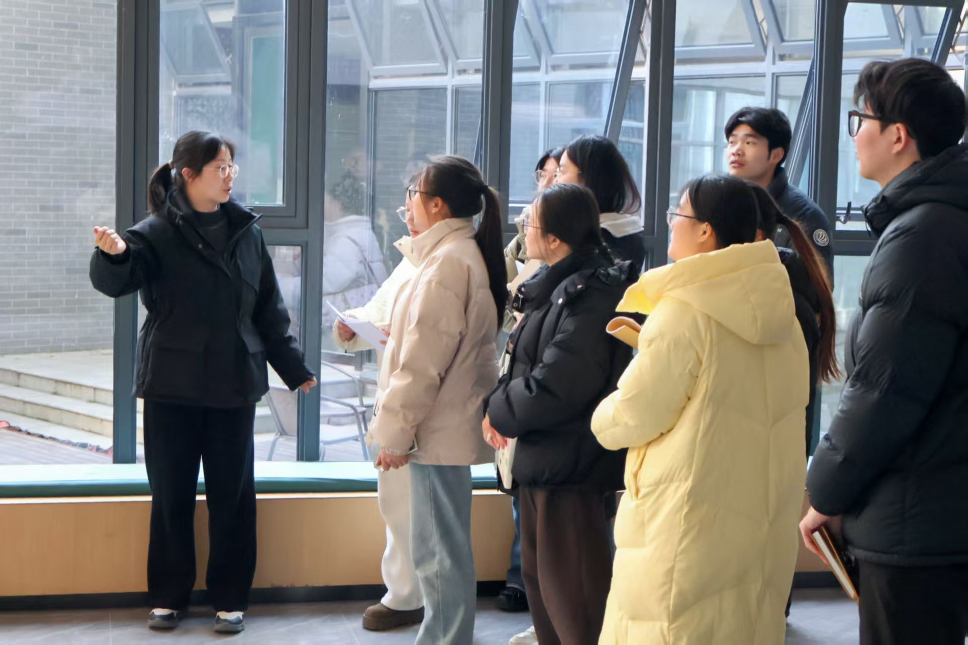 会后,为了让实习生更快适应公司生活,周静老师带领全体实习生参观公司。同学们了解了校园的自然景观、建筑布局、基础设施等环境方面的情况,观摩了各年级的课堂教学。参观结束后,实习生与指导老师进行了首次见面交谈。在交流中,实习生们知晓了实习工作的具体安排,包括实习班级的员工状况、课程进度等关键信息。指导老师向实习生们分享了丰富的教学经验,为实习生们提供了清晰的实习方向。
