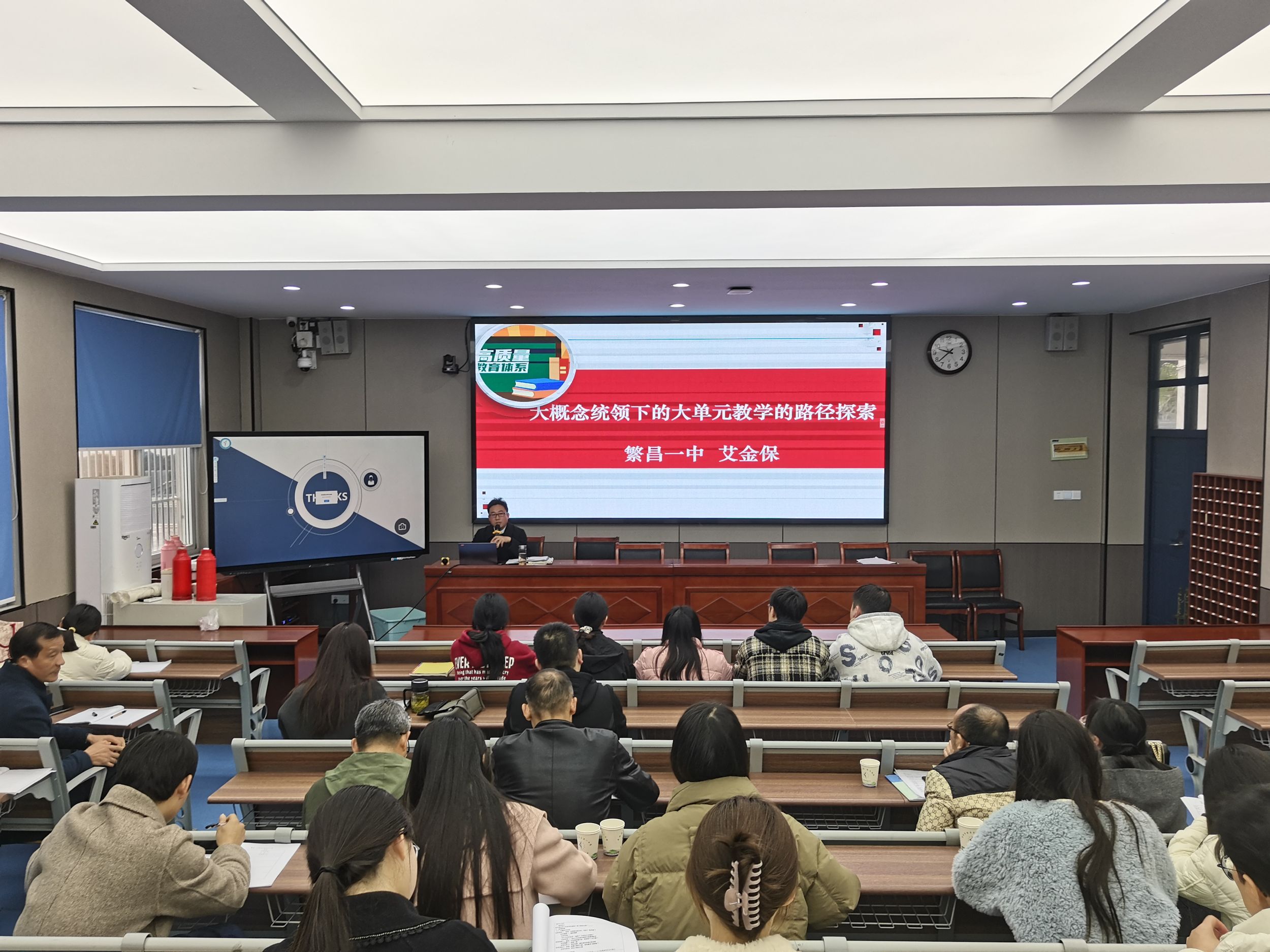 活动伊始,繁昌一中青年骨干教师张明以“电梯里的民主课——基层群众自治制度”为总议题,呈现了一堂精彩纷呈的活动型政治课。张明老师巧妙设计“困局、破局、创局、拓局”四个教学环节,引导员工深入探究基层民主。课堂上,员工们通过情景模拟、角色扮演、方案设计等丰富多彩的活动,打破了传统讲授模式的局限,将课本理论知识与生活实践紧密结合,在情境体验中深刻领悟制度自信的内涵。课后,艾金保老师以《大概念统领下的大单元教学路径探索》为题,为在场师生带来了一场干货满满的专题讲座。艾老师结合新课程标准和高考评价体系,深入分析了当前政治教学中存在的问题,并强调了教研工作的重要性。他指出,教研是推进大单元教学的“突破口”,鼓励全体政治教师积极参与各类教研活动和优质课比赛,在“人人当赛手,人人当评委”的氛围中,不断推进课堂教学改革,提升教学质量。