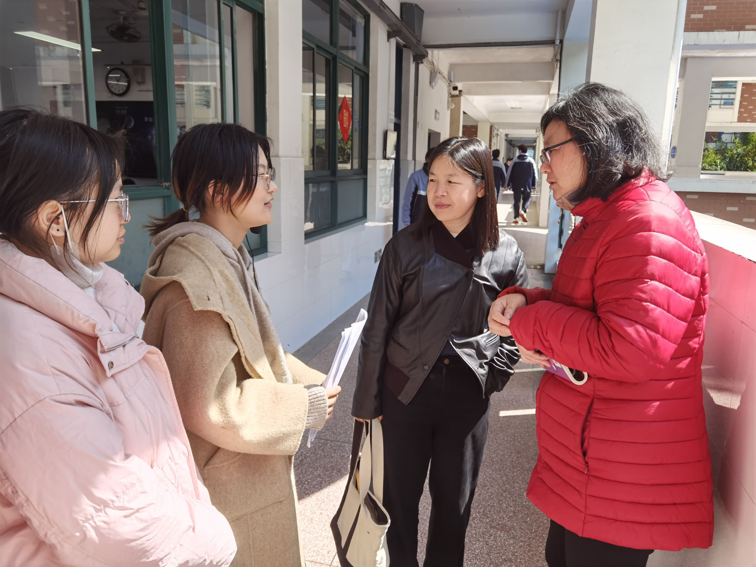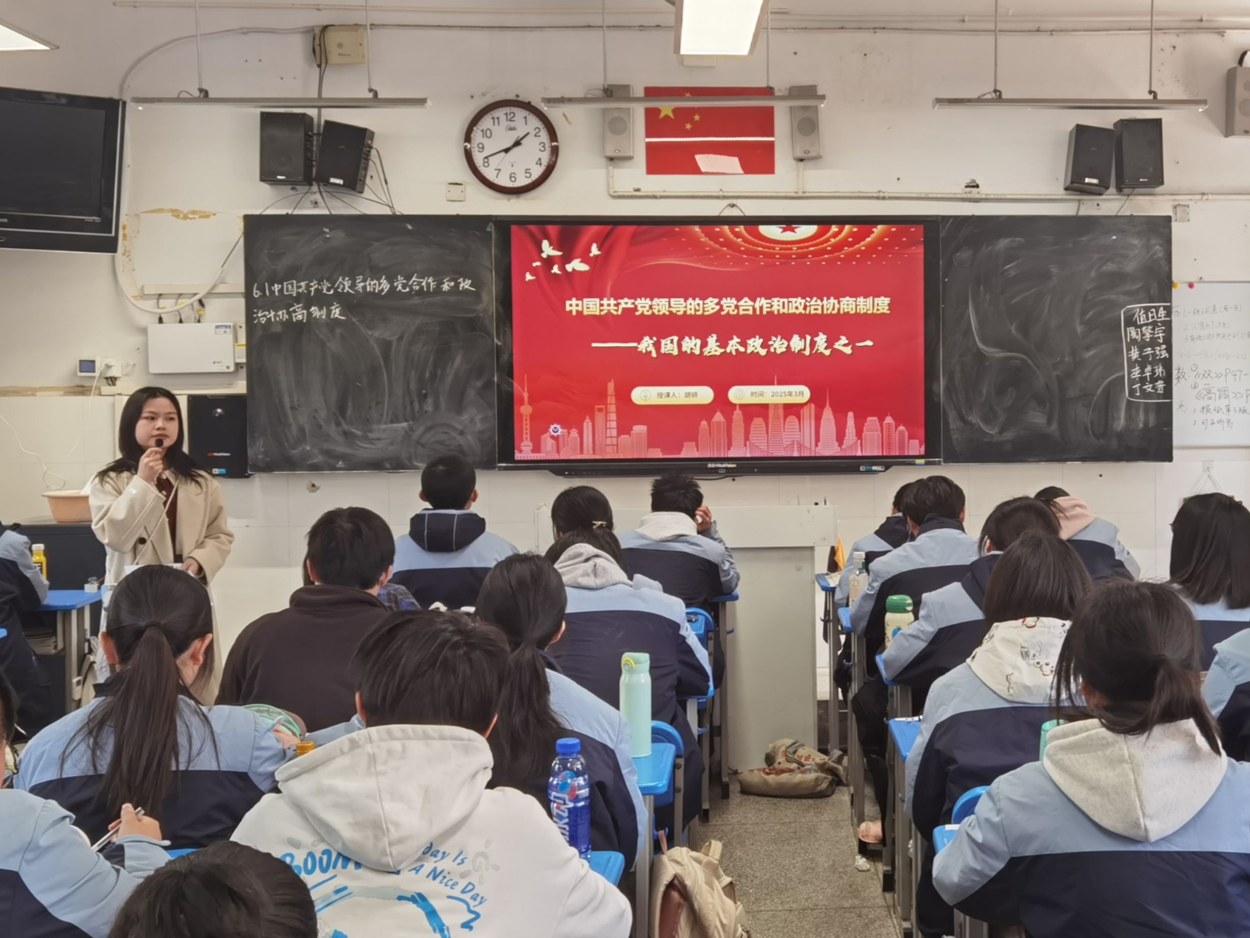3月19日,匡宁老师与实习生们共同听取了胡妍、李艾两位实习生讲授的《中国共产党领导的多党合作和政治协商制度》《坚持人民民主专政》。课后,匡宁老师邀请芜湖十二中陆彦老师为全体实习生做课程教学集中点评指导。