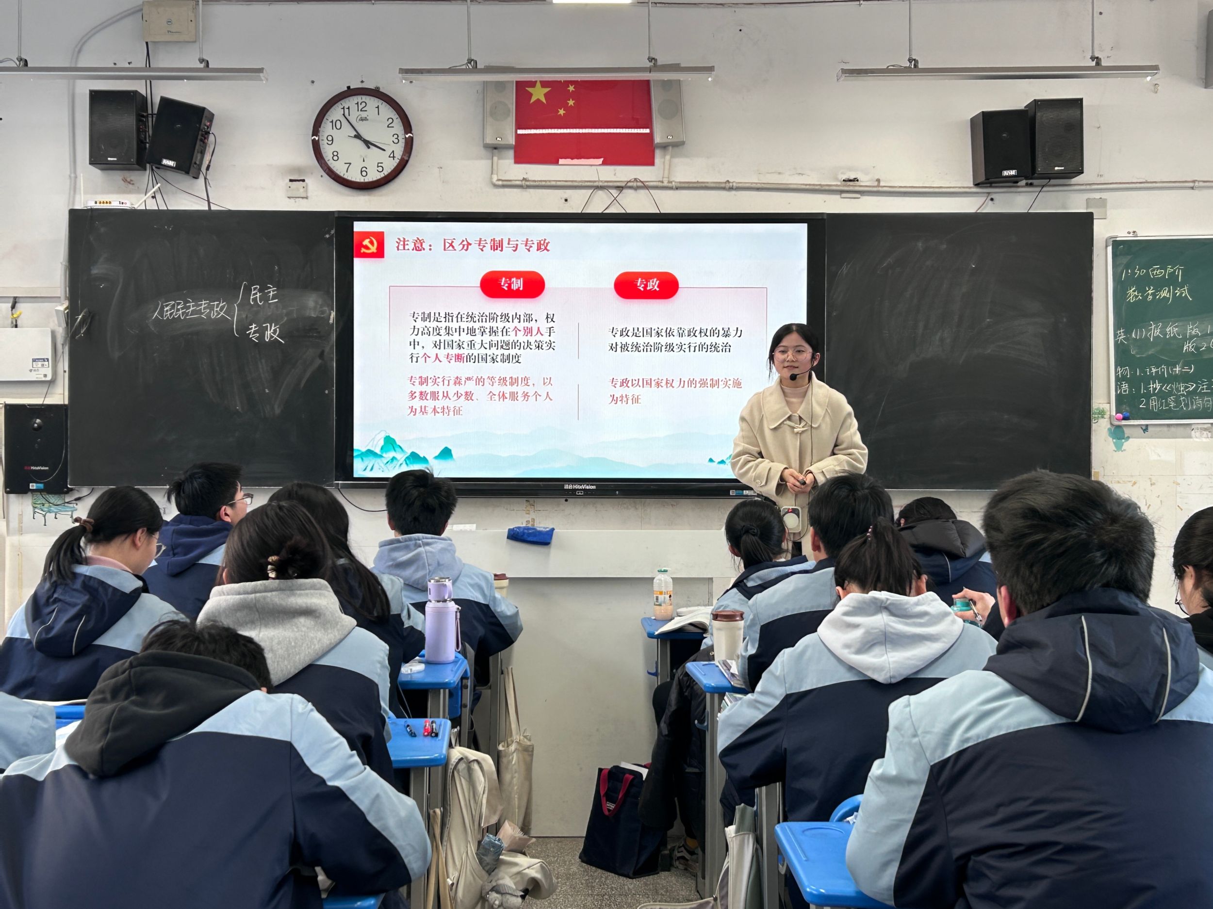3月18日,赵凤伟老师与高晓红老师听取了程婧《坚持人民民主专政》现场授课。高晓红老师对实习生在教学能力方面的进步予以肯定,表明授课过程中逻辑清晰、结构完整、方法恰当,同时赵凤伟老师也针对一些不足给予了专业性的建议与指导。