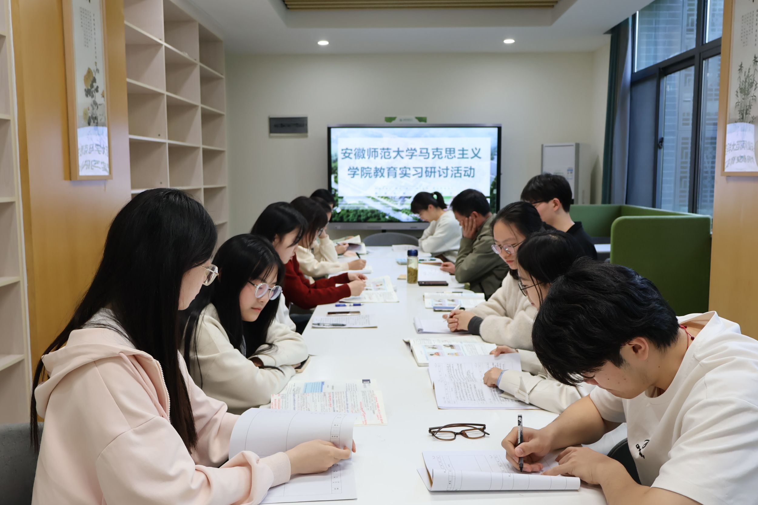 课后,黄必向老师与合肥四中思想政治学科负责人周静老师、高二政治组徐小轩老师及全体实习生共同开展教学研讨。周静老师介绍了实习生的实习进展及本次大单元教学的设计思路。三位实习生分别分享授课心得,并进行教学反思。黄必向老师在点评中充分肯定了实习生的教学实践,指出其采用大单元教学模式,从多角度分析情境素材,有效贯彻了新课改理念。他强调,思政课应立足学科核心素养,聚焦法治意识培养,在准确把握课程目标与内容的基础上,培育新时代守法公民。