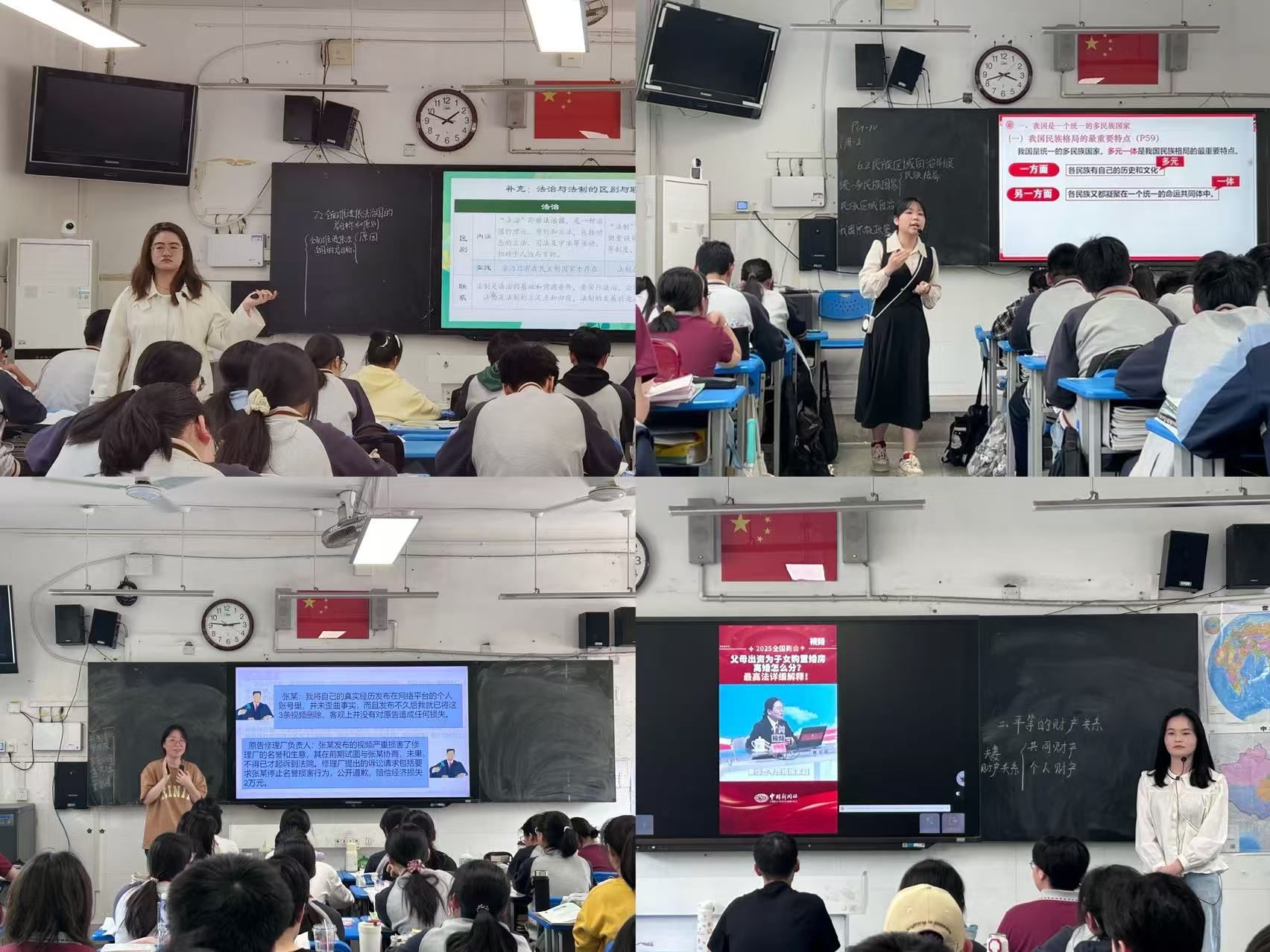 4月17日,匡宁老师与高二政治组张文文、陈丽华老师一同听取了李心怡、张露露两位实习生的现场授课。课后,匡宁老师与实习生们进行亲切交流,实习生们纷纷分享实习以来的成长与收获。针对实习期间遇到的问题,匡宁老师强调要善于复盘总结实践经验,运用多样化的教学方法实现知识传授与价值引领的有机统一。
