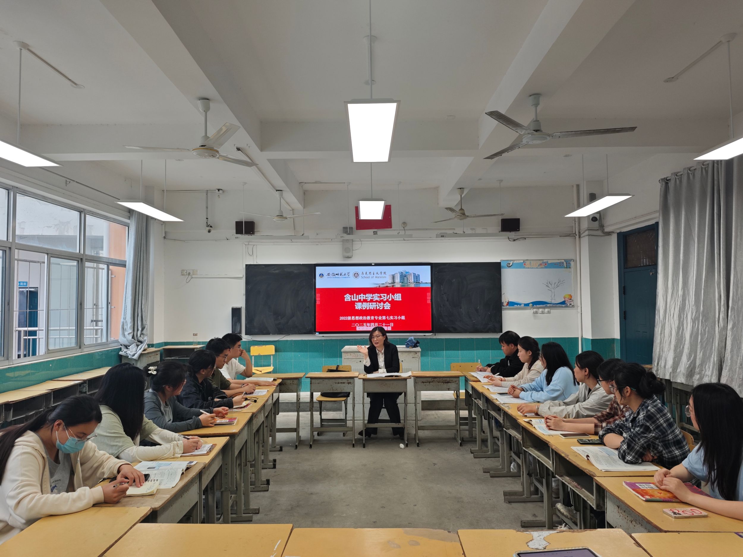 在评课交流环节,薛海燕老师对四位实习生的教学表现进行了细致点评。她充分肯定了同学们在课堂组织和教学语言等方面的进步,特别表扬了大家“理论联系实际的意识强”“师生互动自然”等亮点。同时,薛老师也针对性地提出了改进建议:一是要进一步优化课堂节奏,强化知识点的系统性;二是要增强情境创设的真实性和代入感;三是要注重课堂生成的灵活把握。