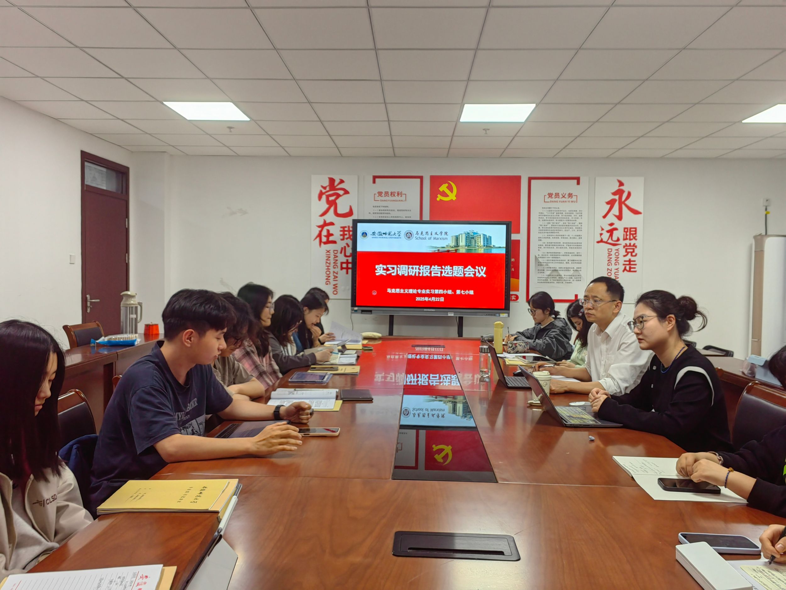 为深化专业实习成果,提升员工实践调研能力,4月22日晚,马克思主义理论专业2022级第四、第七实习小组在公司G211教室召开实习调研报告选题会议。本次会议由实习指导教师陈勇、朱罗莎共同主持,两组成员全员参会。