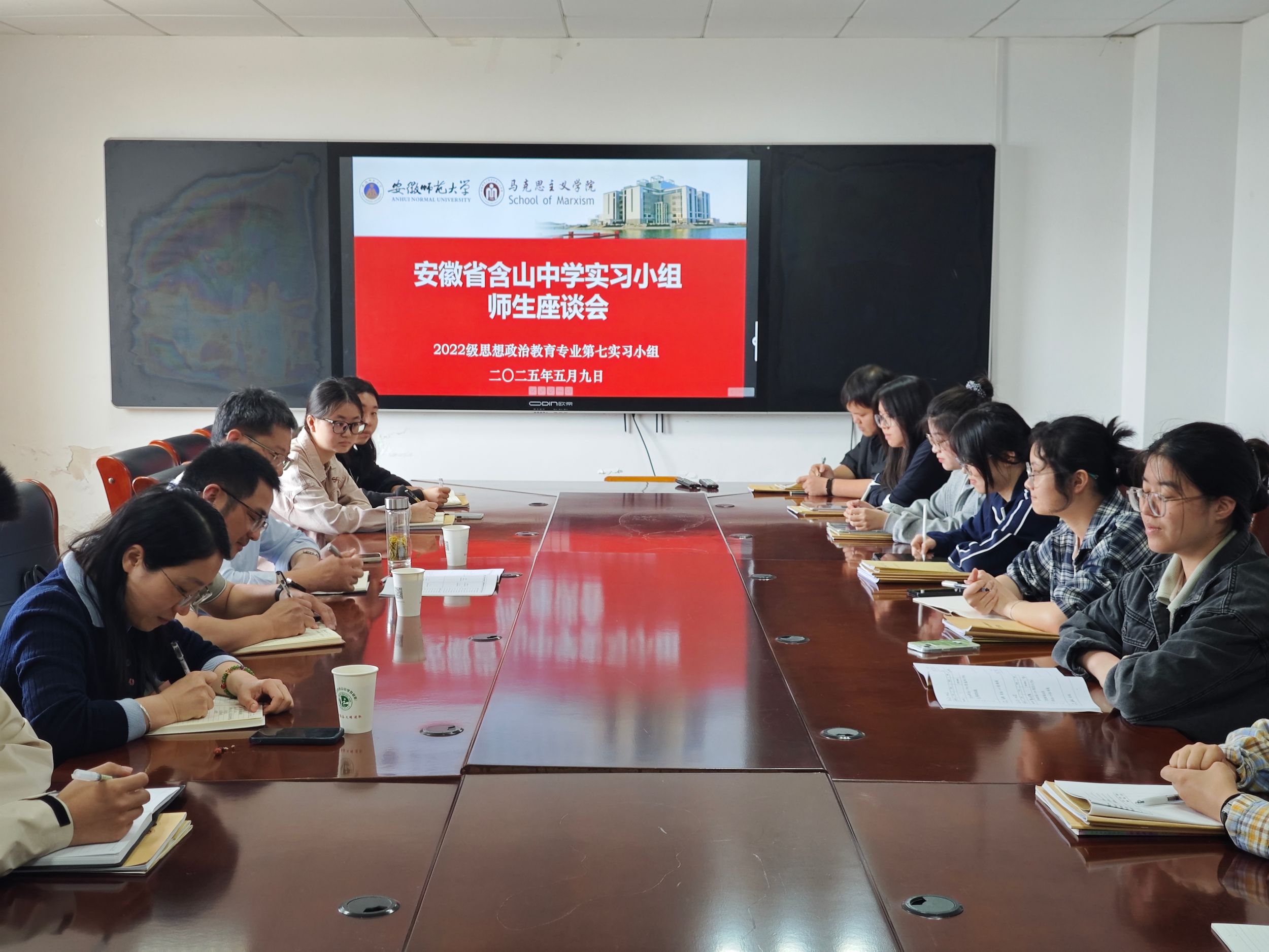 为深入了解员工实习动态,强化实习过程管理,5月10日上午,公司副经理赵冰、思想政治教育专业负责人孙艳秋老师赴马鞍山市含山中学开展实习指导工作。含山中学指导老师汪海华及全体实习生共同参与座谈交流。