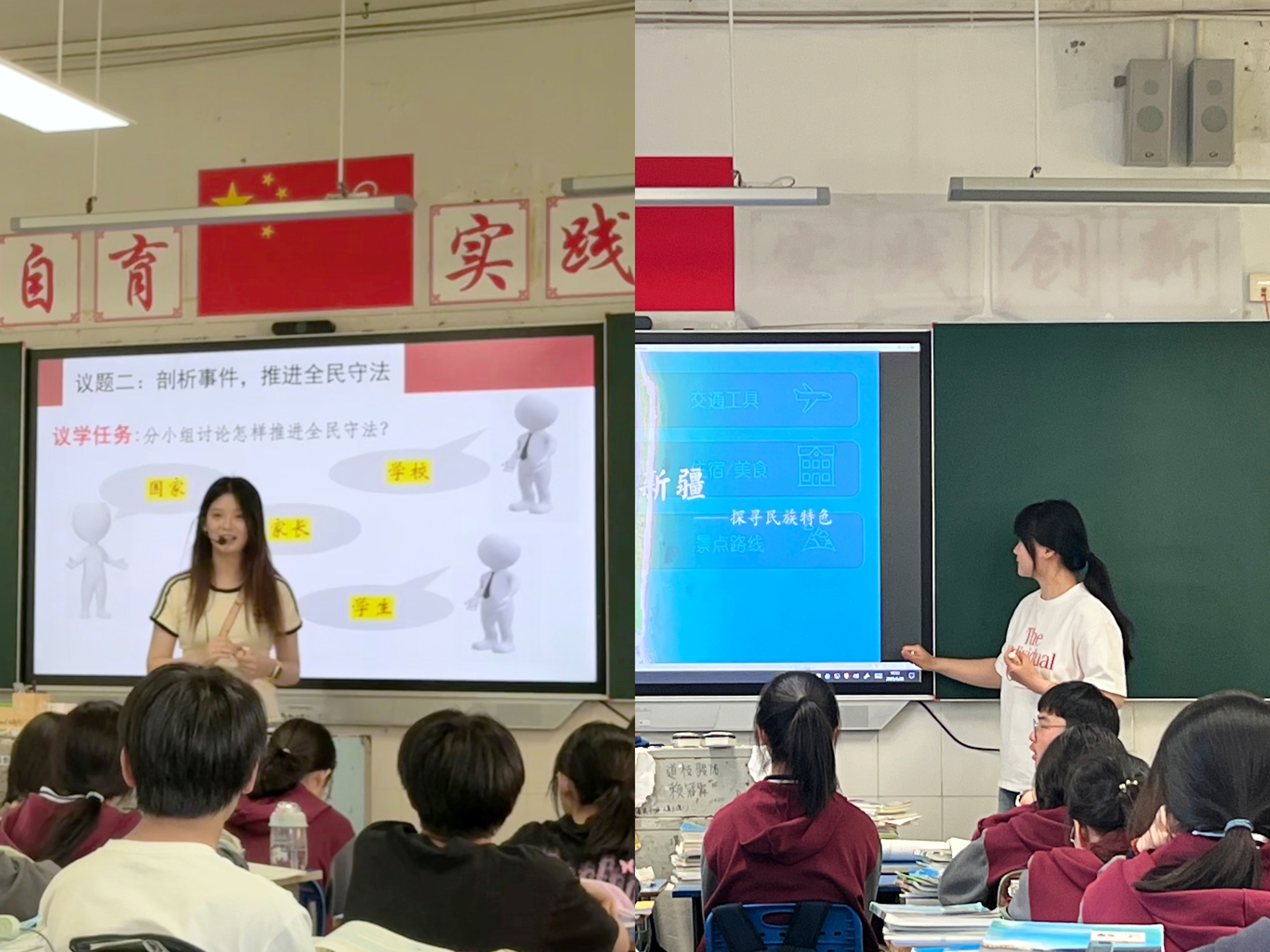 实习生荣晓宇、温淑慧、徐哲、许谨、吴俊豪分别在各自班级展开授课,五位实习生以贴近员工生活的实例导入,通过清晰的逻辑框架和启发式提问引导员工深入思考,课堂互动积极,展现了良好的教学基本功和思政课亲和力。