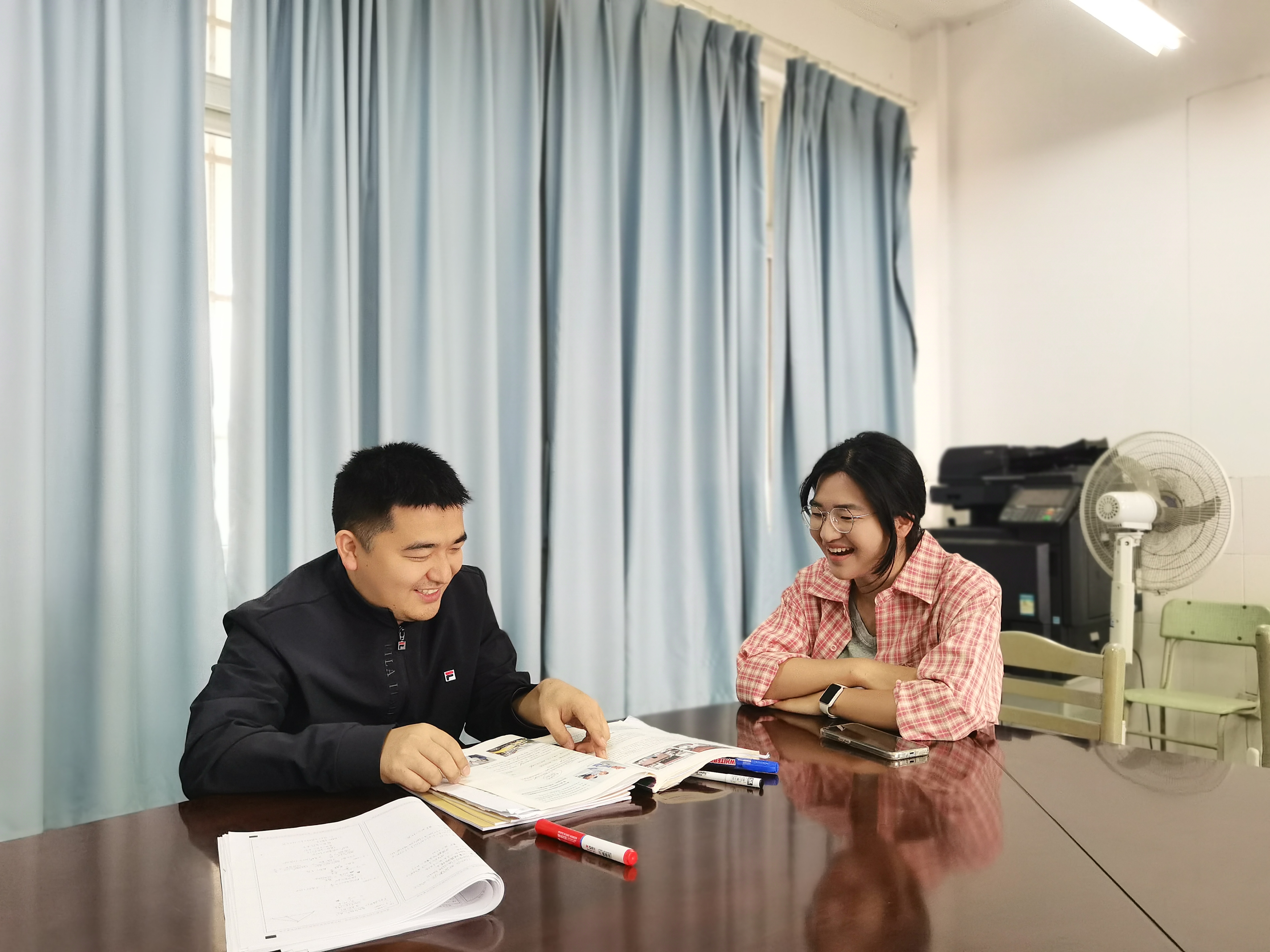 为强化教育实践成效,有效推进实习收尾工作,5月28日-29日,公司指导老师仰永忠再次前往繁昌一中,深入课堂一线,对实习生进行教学指导与交流。