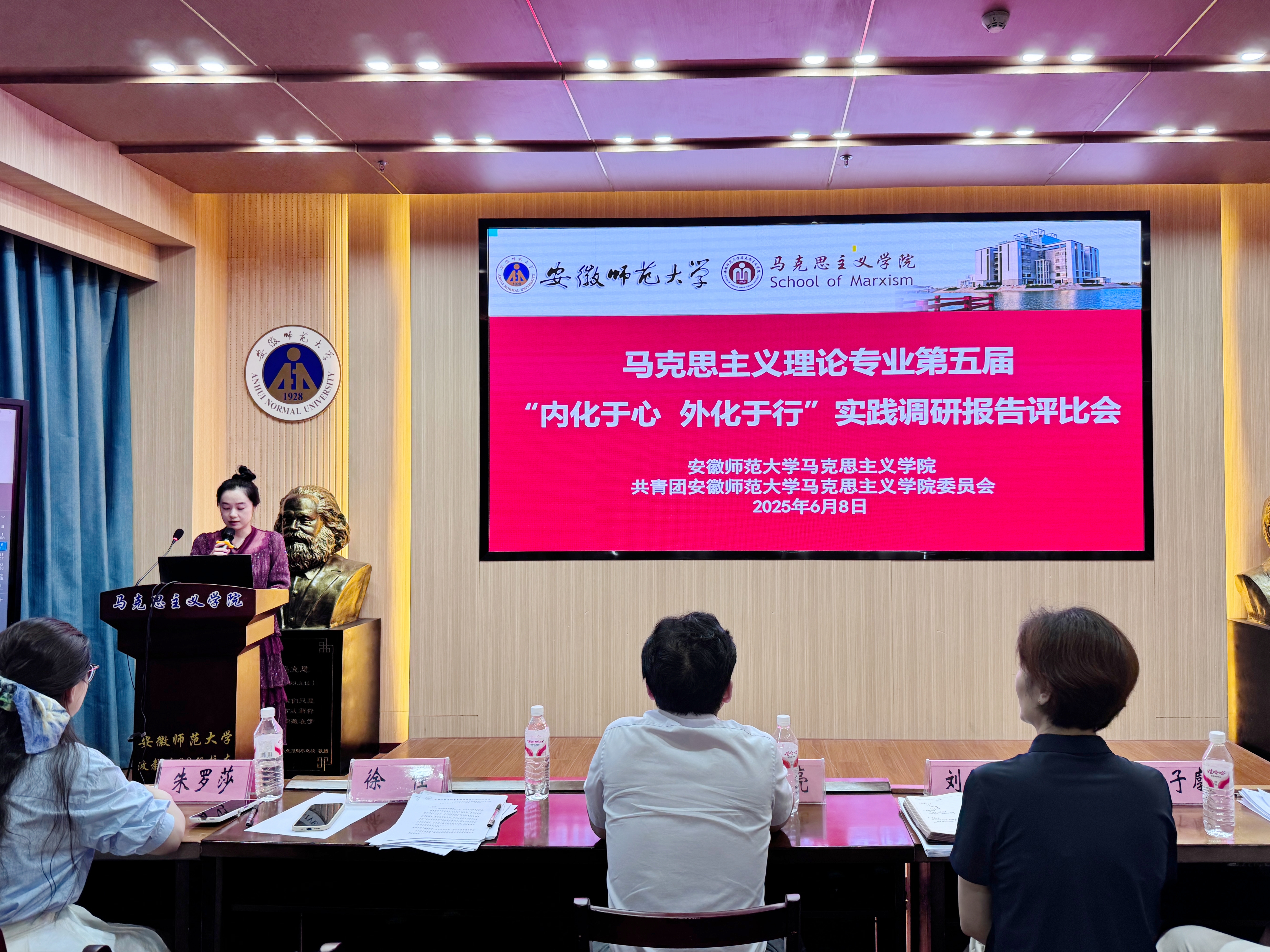 6月8日晚上,beet365在文典楼G108报告厅举行马克思主义理论专业第五届“内化于心,外化于行”实践调研报告评比会。公司党委副书记刘玉艳,马理论专业负责人王子廓,各团队实习指导老师,2024级本科生辅导员夏盼盼出席会议,马理论专业2022级全体员工、马理论专业2024级员工代表参加会议。会议由朱子晗主持。