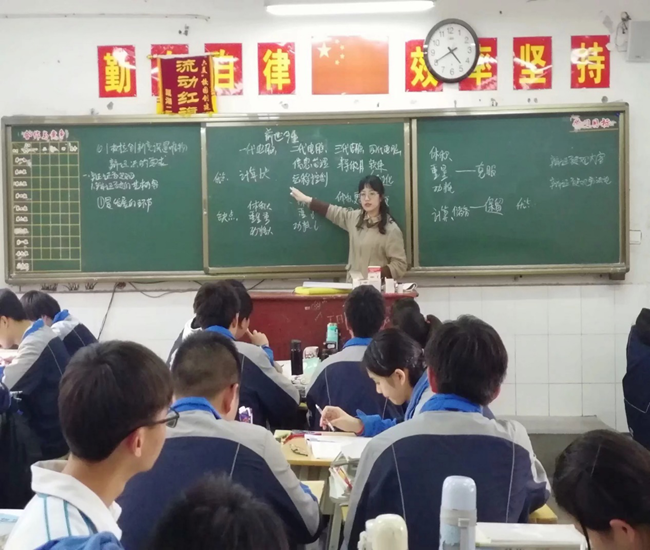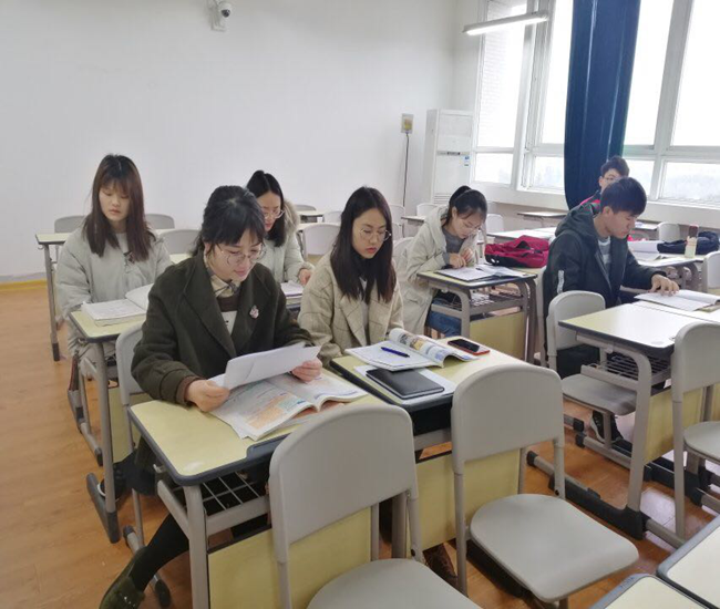博观约取,厚积薄发。实习前两周,实习生们认真观摩了指导老师的讲课,一丝不苟地记录,并在课后就听课内容进行交流和总结。在逐渐了解班主任工作之后,实习生们开始查看早晚读、帮助指导老师批改作业、课间跟随班级跑操。与此同时,正式上课之前,每位实习生都在行政楼办公室里,认真阅读课本和教参、精心准备教学课件、反复进行授课练习,希望能将最完美的姿态展现给班级员工。经过一系列的观摩、备课,实习生们终于站上了讲台,以老师的身份面对每一位员工。