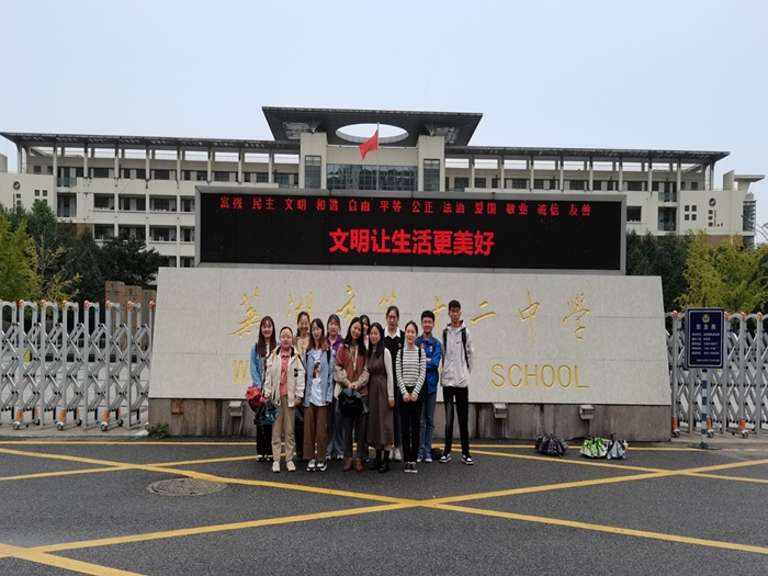 本网讯(文/彭静 图/彭艳芳)纸上得来终觉浅,绝知此事要躬行。9月22日上午,公司2017级思想政治教育本科专业实习小组的14名同学,在指导教师戴家芳的带领下来到了安徽省芜湖市第十二中学,开启了为期六周的实习之旅。