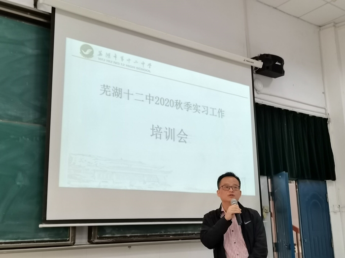 上午十点半,实习小组成员们满怀憧憬,踏进校园。到达后,芜湖市第十二中学在阶梯教室举办了实习小组与政教处黄主任的见面会。会上,黄主任对实习小组的到来表示热烈欢迎,并向实习小组简单地介绍了公司的发展历史、办学规模、办学理念、团队力量等情况。接着,他对实习工作进行了细致地介绍和安排。同时,他要求,各实习生在实习期间要端正学习态度,履行教师职责,学会与员工们相处,严格要求自己,丰富理论知识,提高教学技能,做到“五到”。最后,各位指导老师与自己所带的实习生进行初步交流,简单地了解每位实习生的具体情况,以便在日后的实习过程中提供更具针对性的指导。