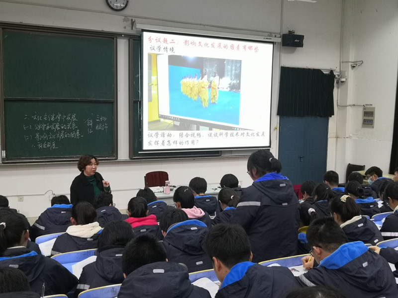赵磊老师就高中政治中《文化在继承中发展》的内容为大家呈现了一堂精彩的公开示范课。他采用议题式展开本节课的教学,设置了议题情境、议题活动和议学提示,以河南台春晚《唐宫夜宴》情境导入一例到底,充分利用图片、视频等多种教育资源展开对“如何正确对待文化继承与发展的关系”和“影响文化发展的因素有哪些”两个分议题的讲解。课堂上,赵磊老师用幽默的话语和以接龙的方式与同学进行互动,调动了课堂气氛,师生互动频繁,给即将走上实习岗位的实习生带来了思考和启迪。最后,她通过思维导图对本节课的知识进行了梳理,并结合板书完整地总结了教学内容。此次教学观摩是2018级本科生实习前期的“三个一”系列活动——进一次中学课堂,为同学们提供了一次良好的学习交流平台,也为同学们即将到来的实习工作打好基础。