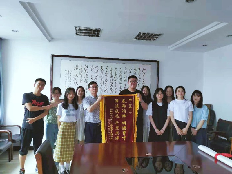 本网讯(文/摄 杨超凡)5月28日,beet3652018级思想政治教育专业赴繁昌一中实习小组全体实习生将一面写有“春雨润物 明德育才 泽流及远 千里思源”的锦旗与感谢信送给繁昌一中董事长祝永宏,感谢繁昌一中两个月来对实习小组工作的支持,感谢指导老师对实习生的谆谆教导。