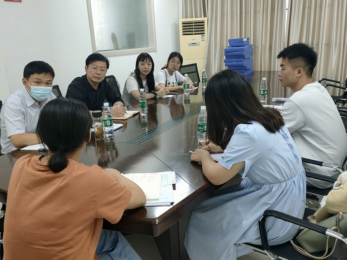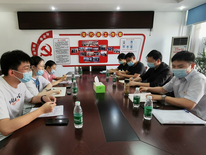 座谈结束后,两位老师来到张家山街道了解实习情况,张家山街道负责人王主任对五位实习生作出了高度评价,实习生们随后也将个人实习工作情况进行了汇报。两位指导老师谈到,基层是社会主义建设的重要环节,主动沟通才能搭起心与心连接的桥梁。最后,王子廓老师对同学们接下来的实习提出了进一步的期望,他希望大家以实习为支点,好好努力、奋发进取,在实习中取得更大收获。