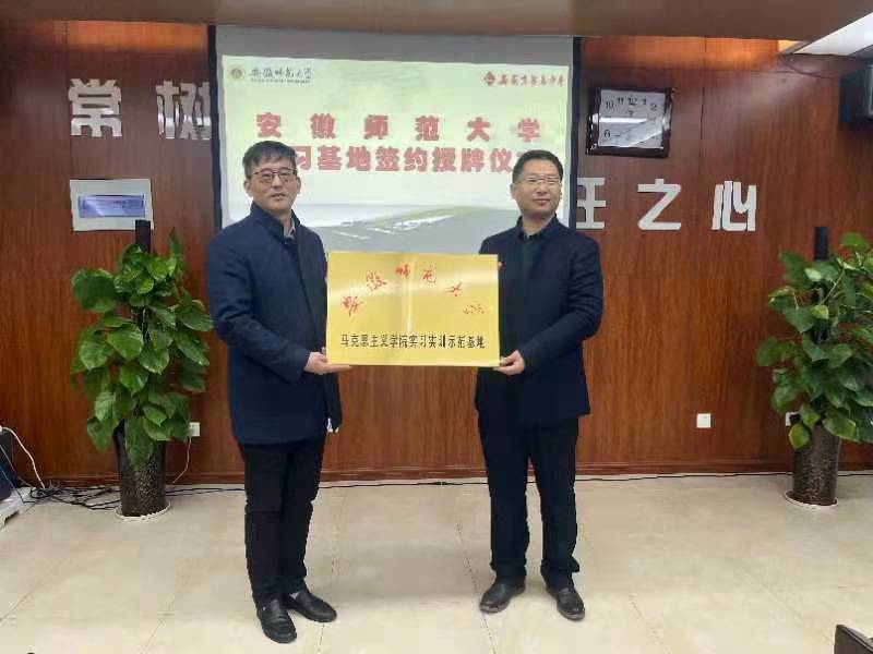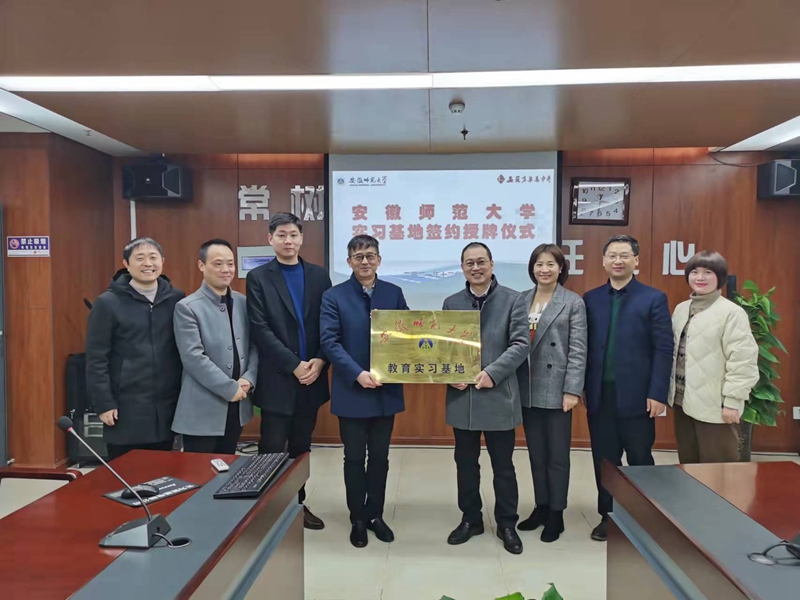 顺利抵达无为中学后,双方进行了实习基地签约授牌仪式。无为中学董事长助理项立群介绍了无为中学的基本情况,对与beet365官方网站、beet365建立实习实训示范基地表示欢迎,强调积极配合beet365官方网站、beet365做好思想政治教育专业实习基地的建设,并将积极指导来校实习的老员工。签约授牌仪式中,无为中学领导与教务处领导分别代表双方进行了揭牌并签订双方合作协议。